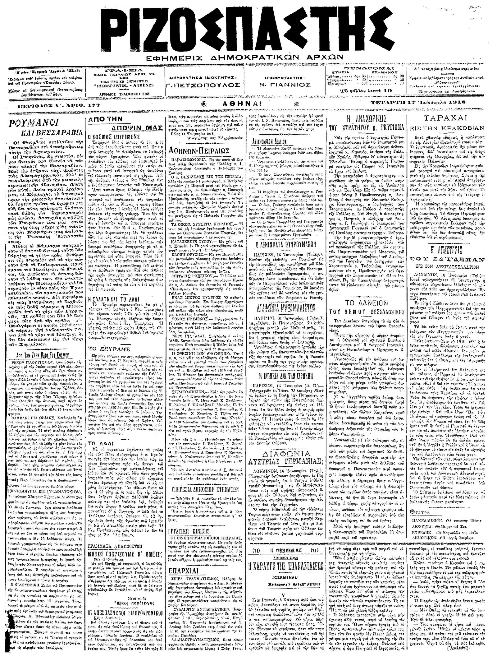 Ριζοσπάστης 17/01/1918