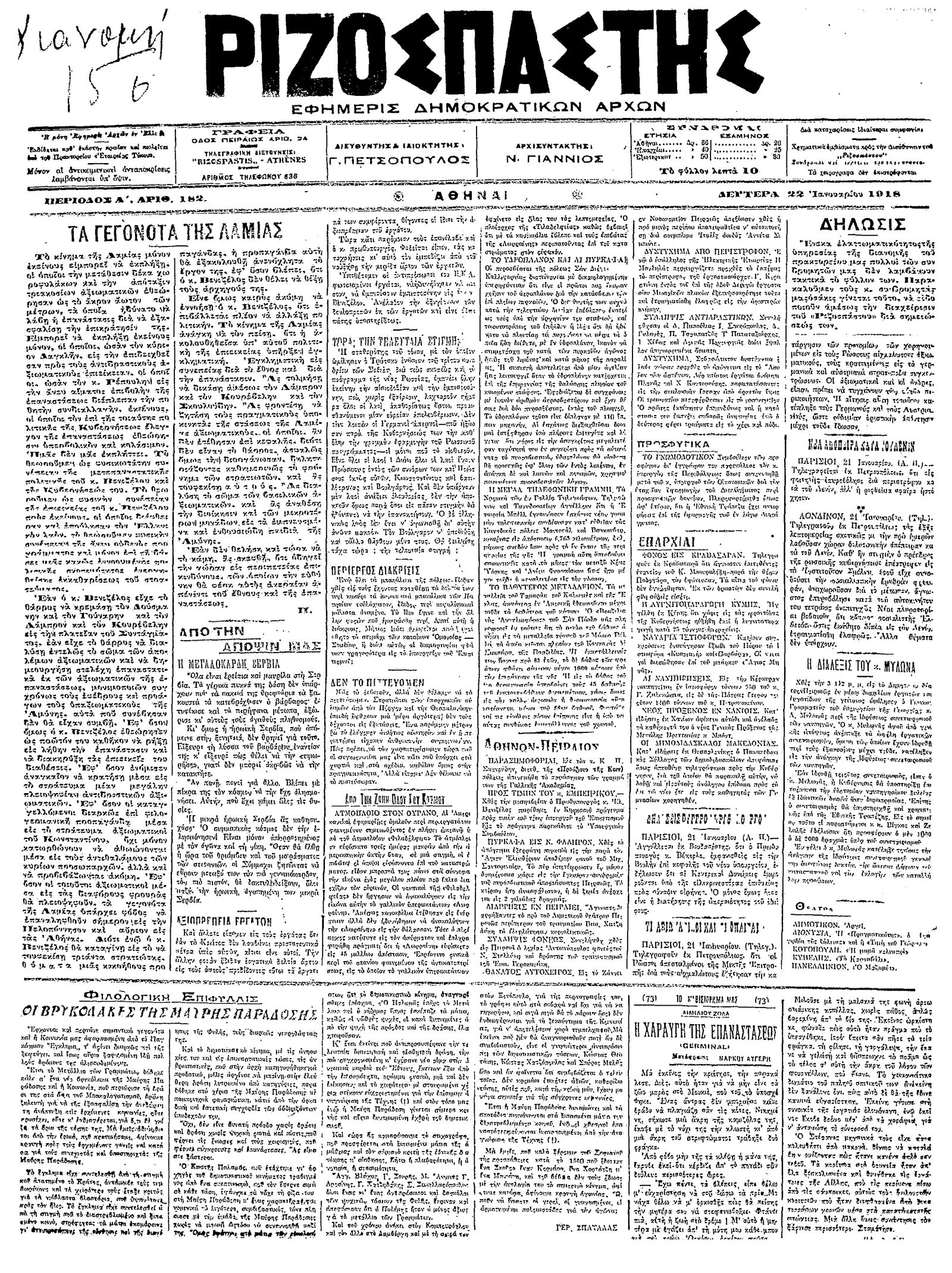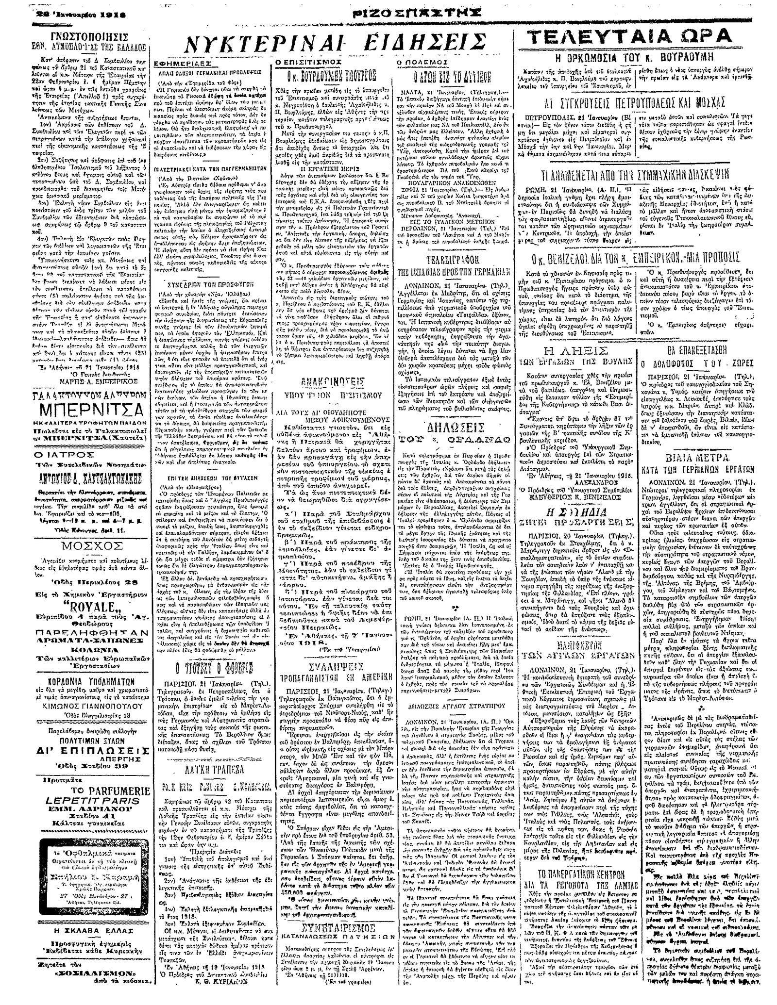 Ριζοσπάστης 22/01/1918