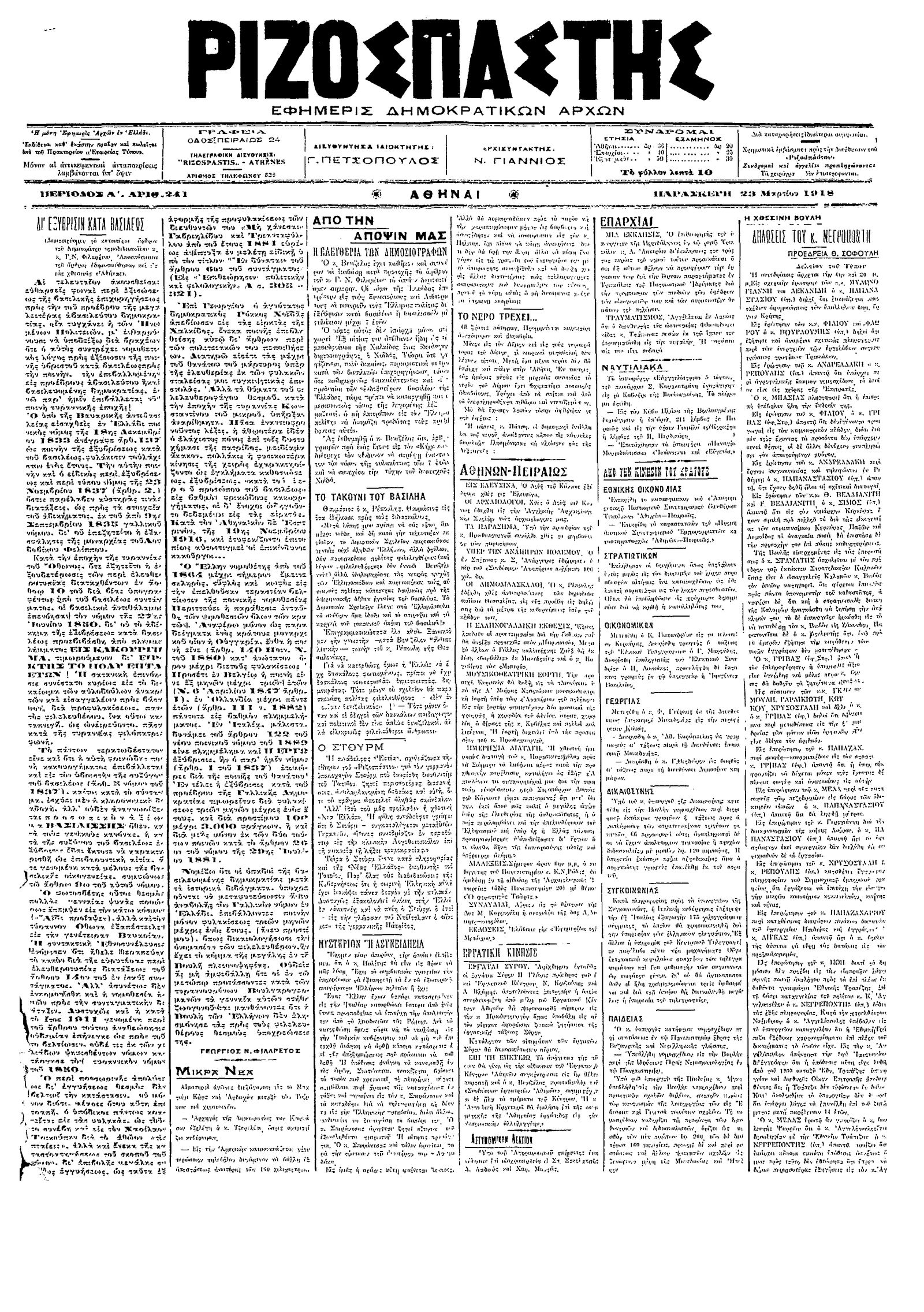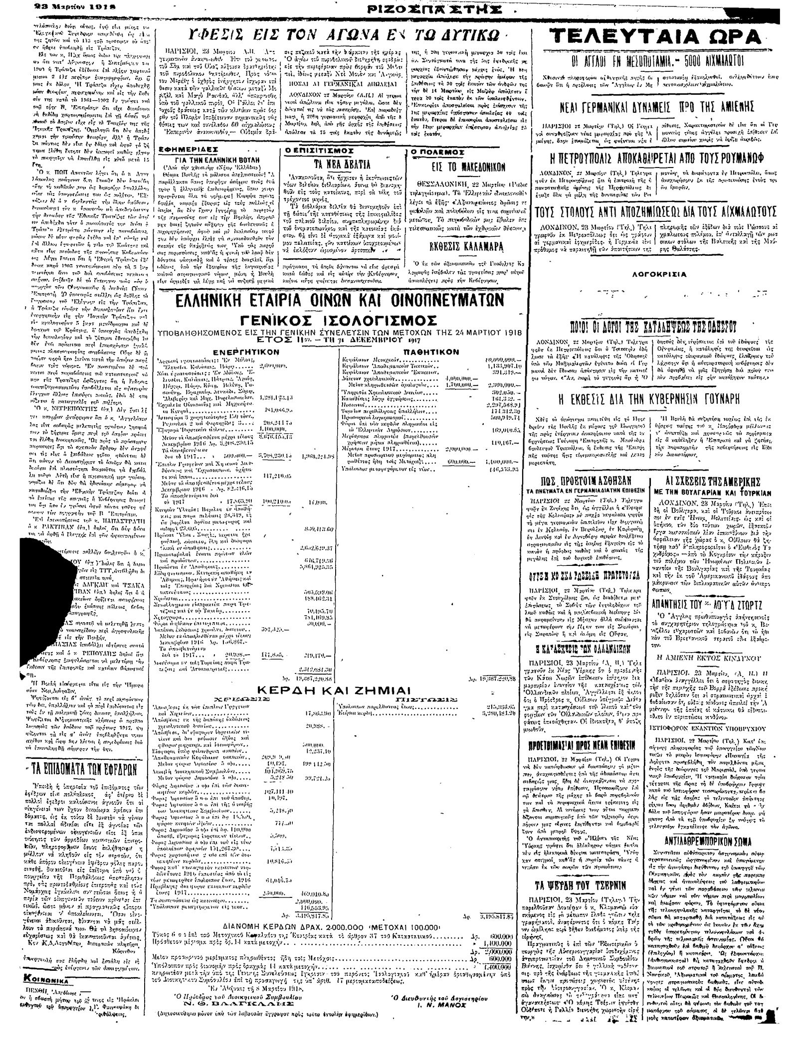 Ριζοσπάστης 23/03/1918