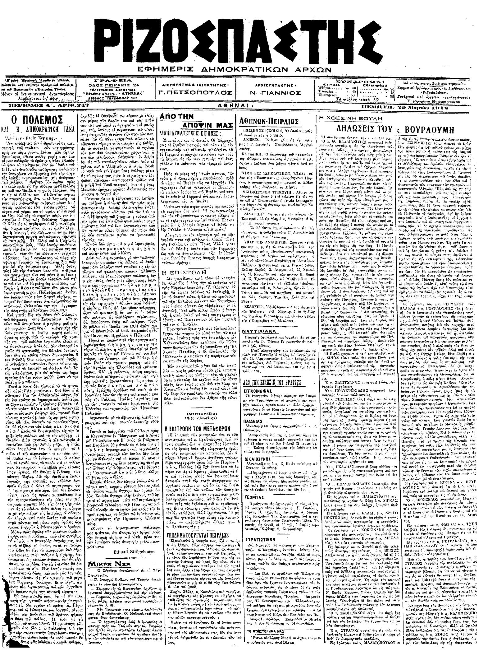 Ριζοσπάστης 29/03/1918
