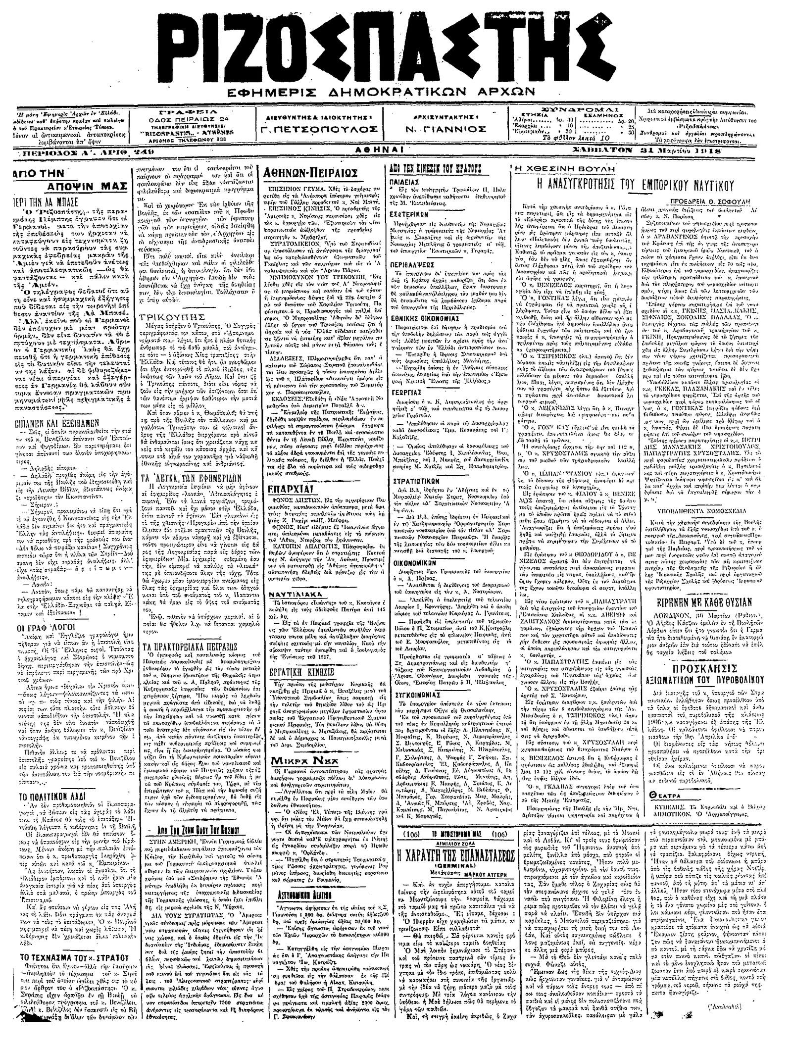 Ριζοσπάστης 31/03/1918