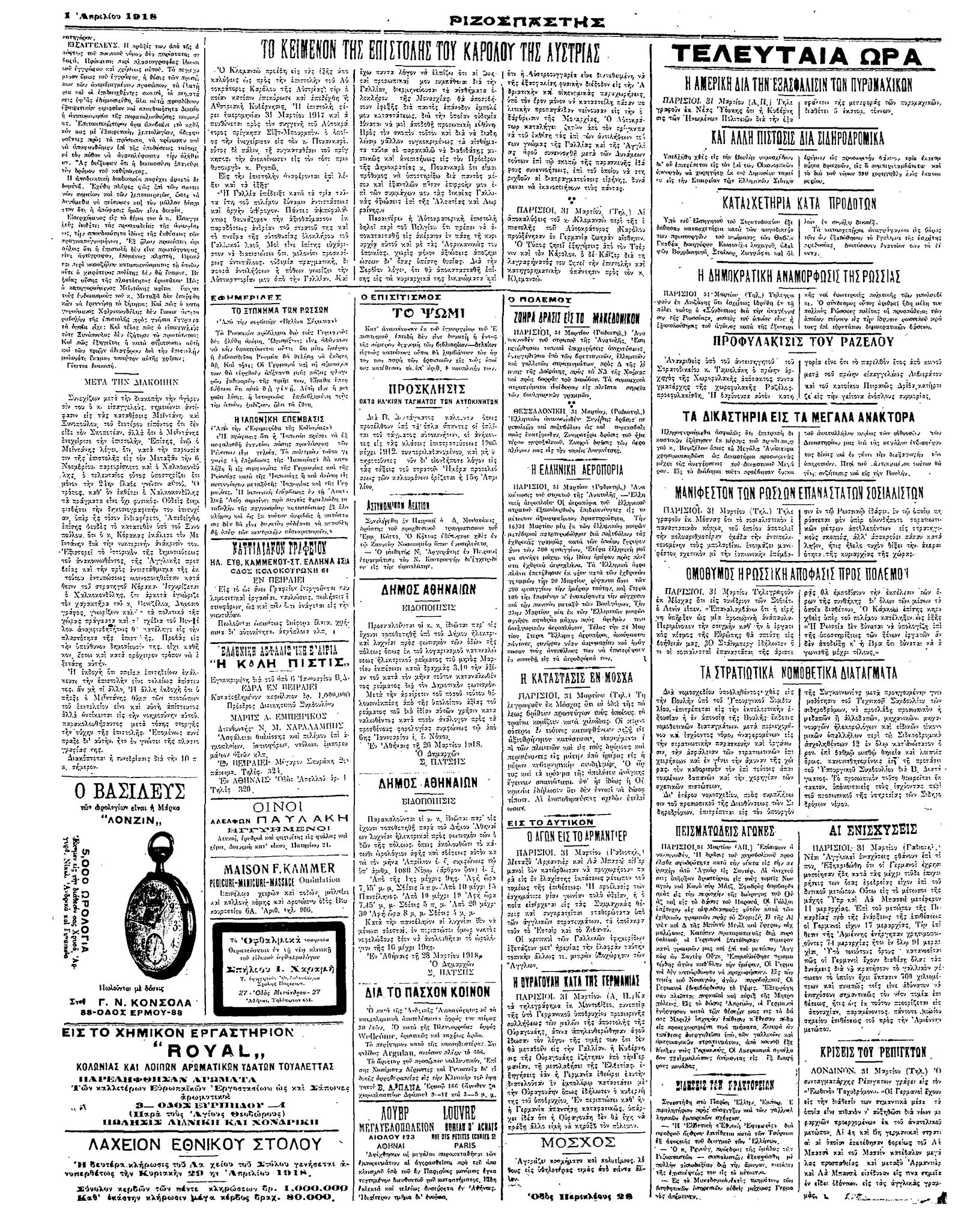 Ριζοσπάστης 01/04/1918