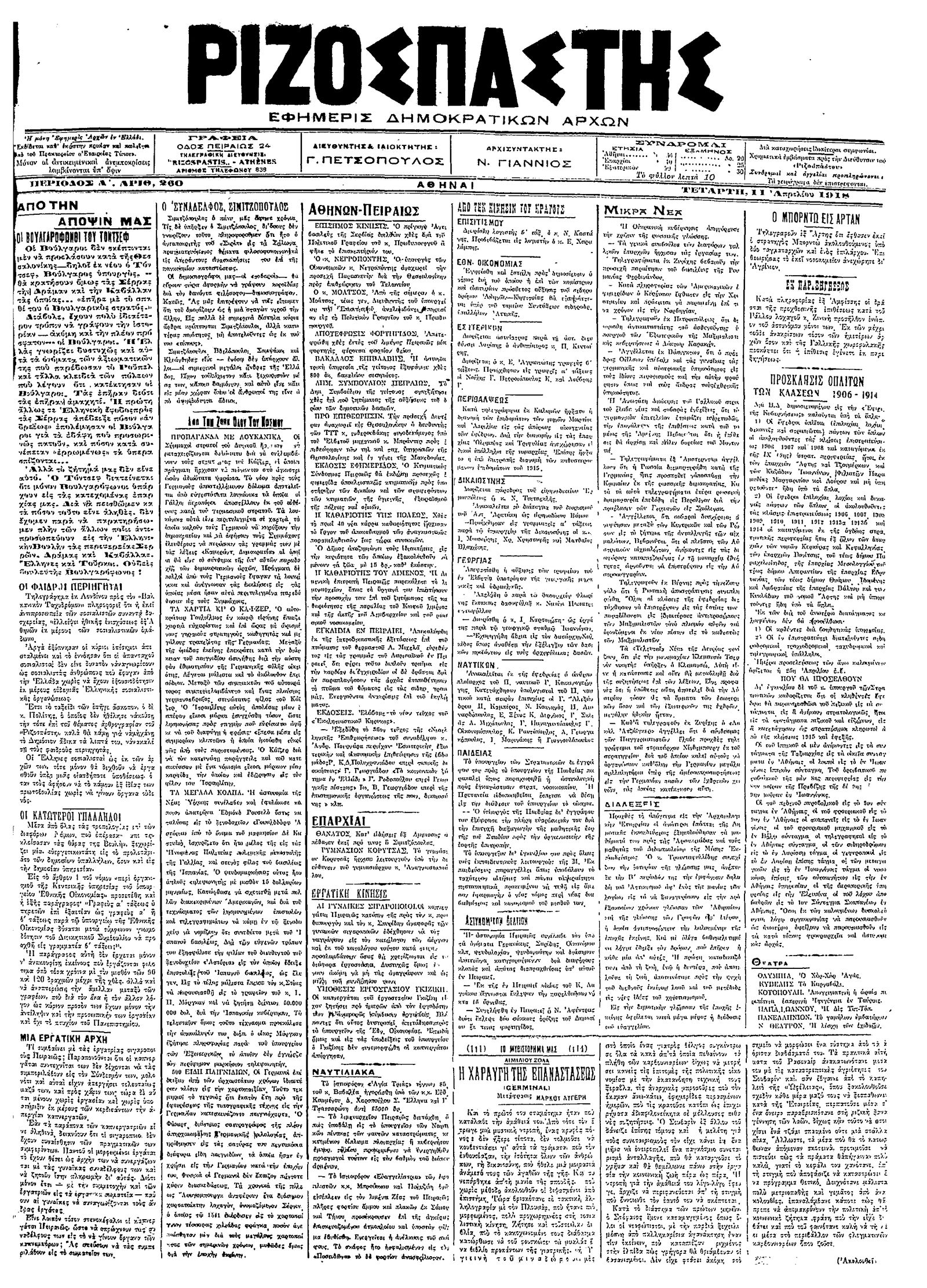 Ριζοσπάστης 11/04/1918