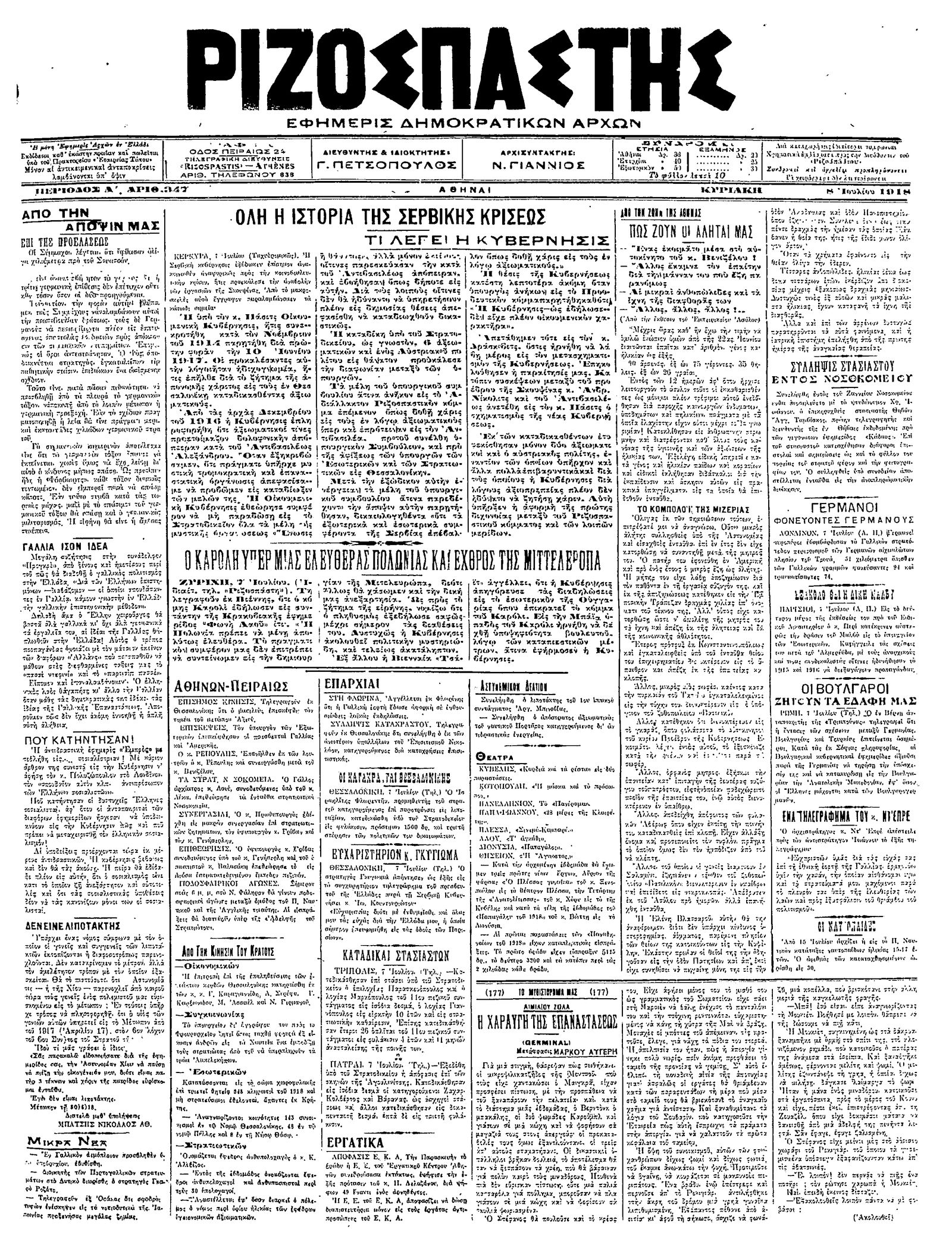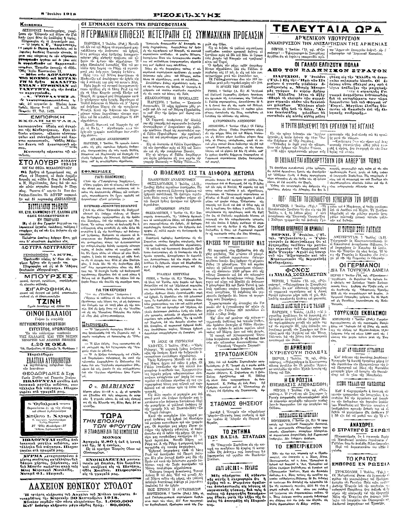 Ριζοσπάστης 08/07/1918