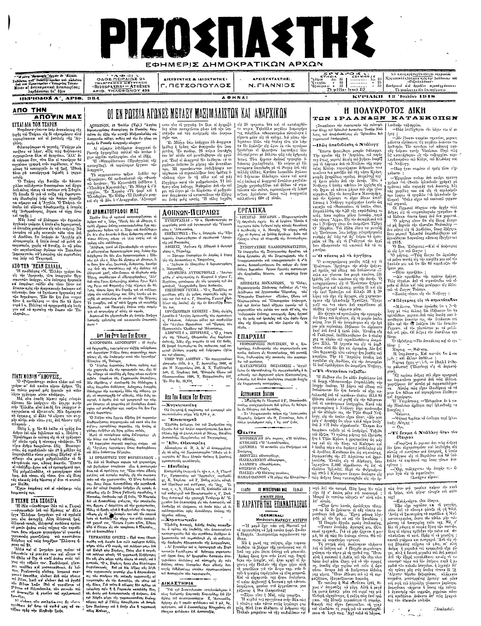 Ριζοσπάστης 15/07/1918