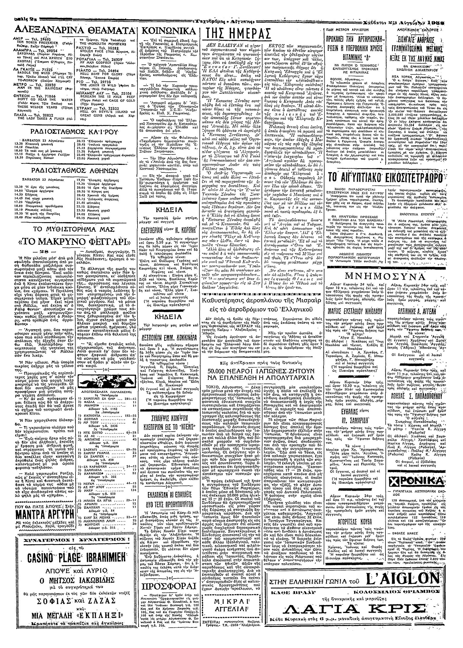 Ταχυδρόμος 23/08/1958