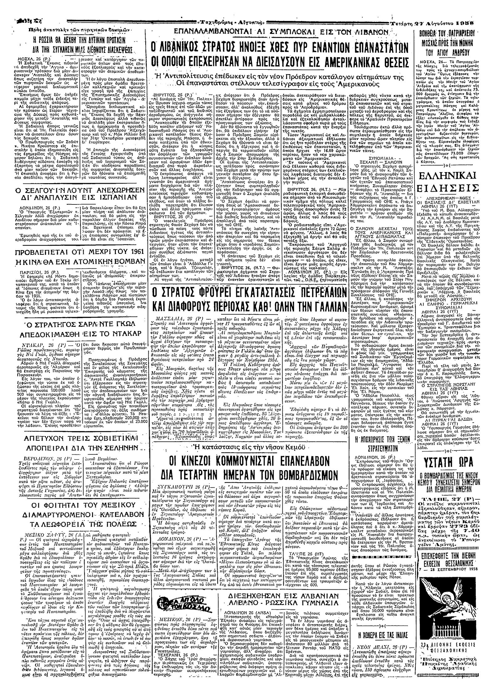Ταχυδρόμος 27/08/1958