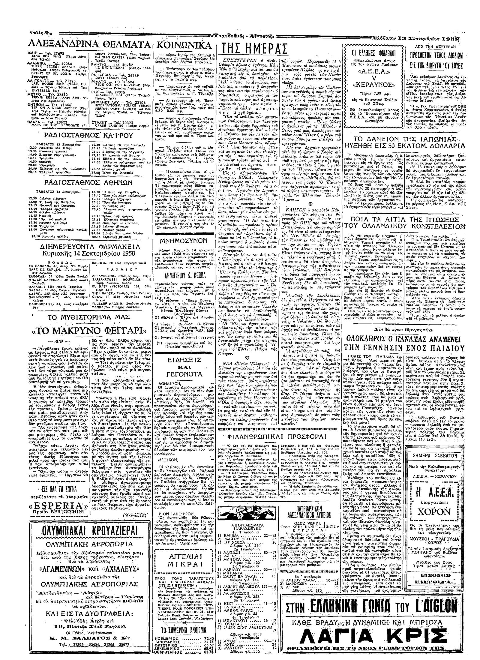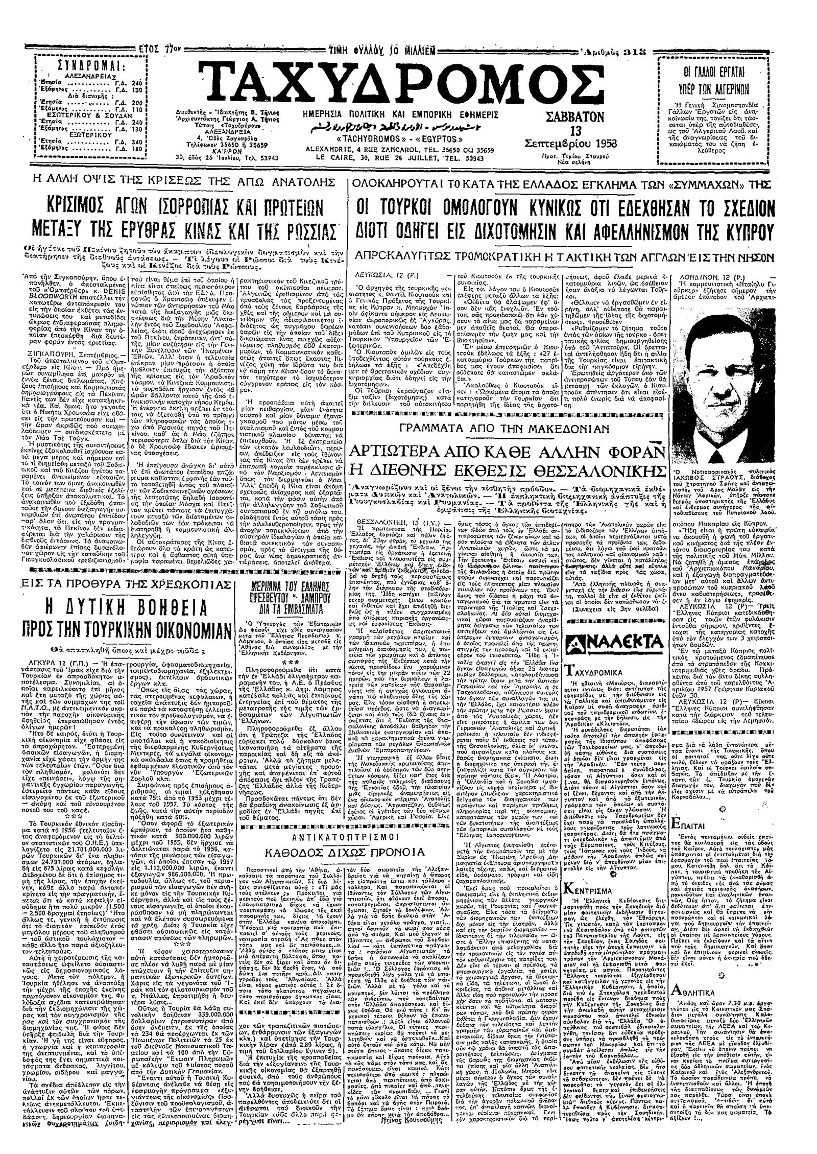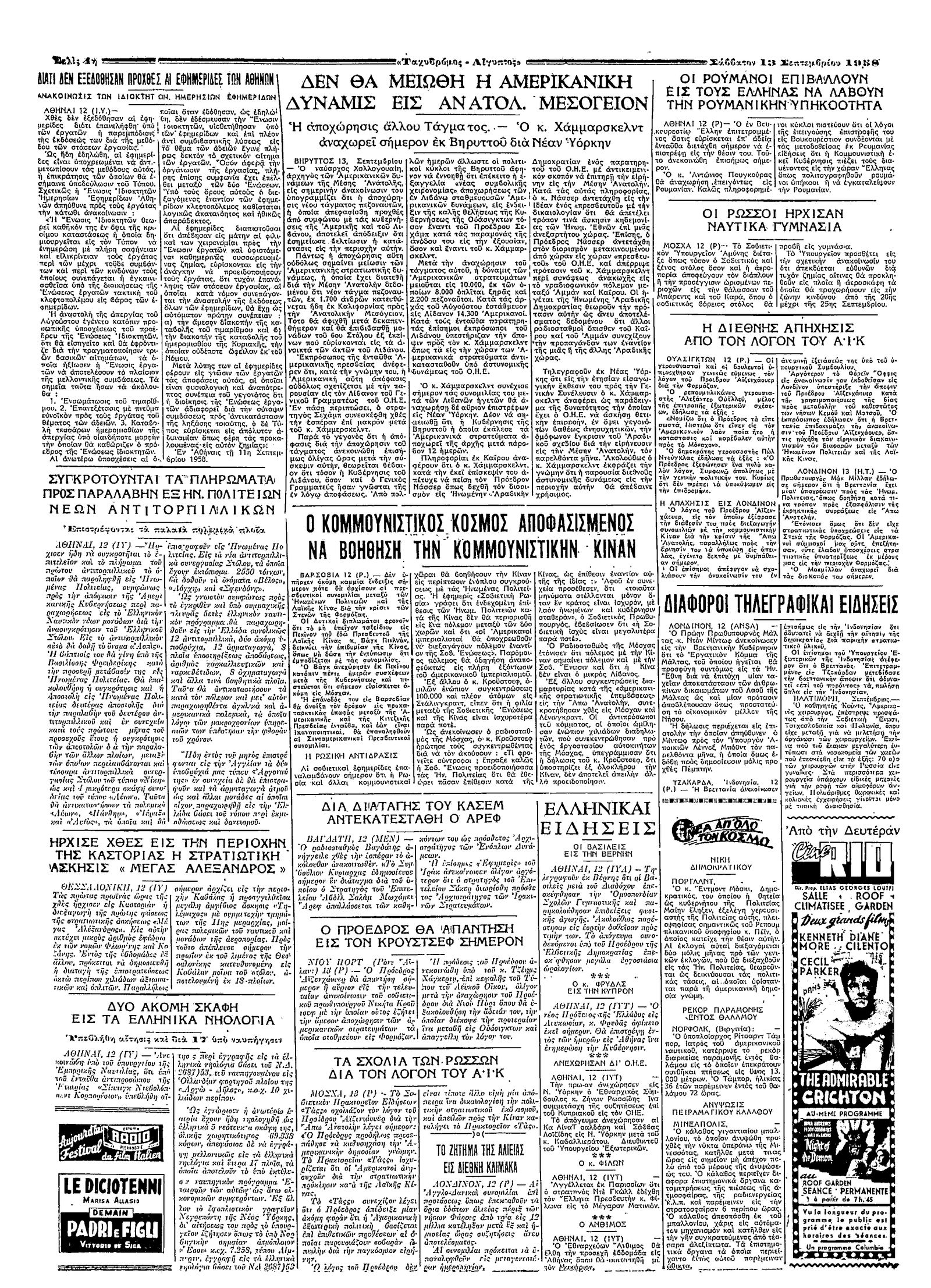Ταχυδρόμος 13/09/1958