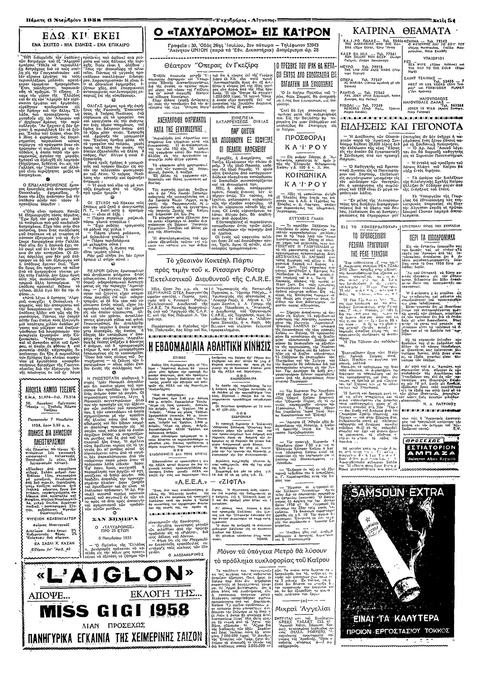 Ταχυδρόμος 06/11/1958