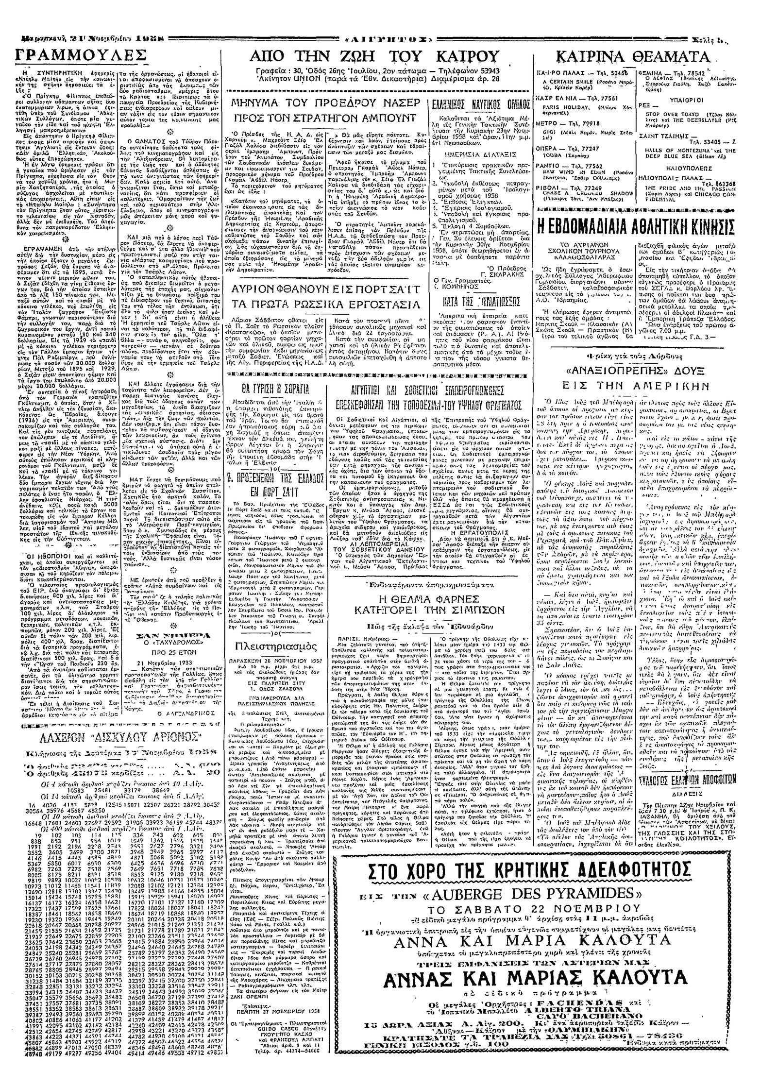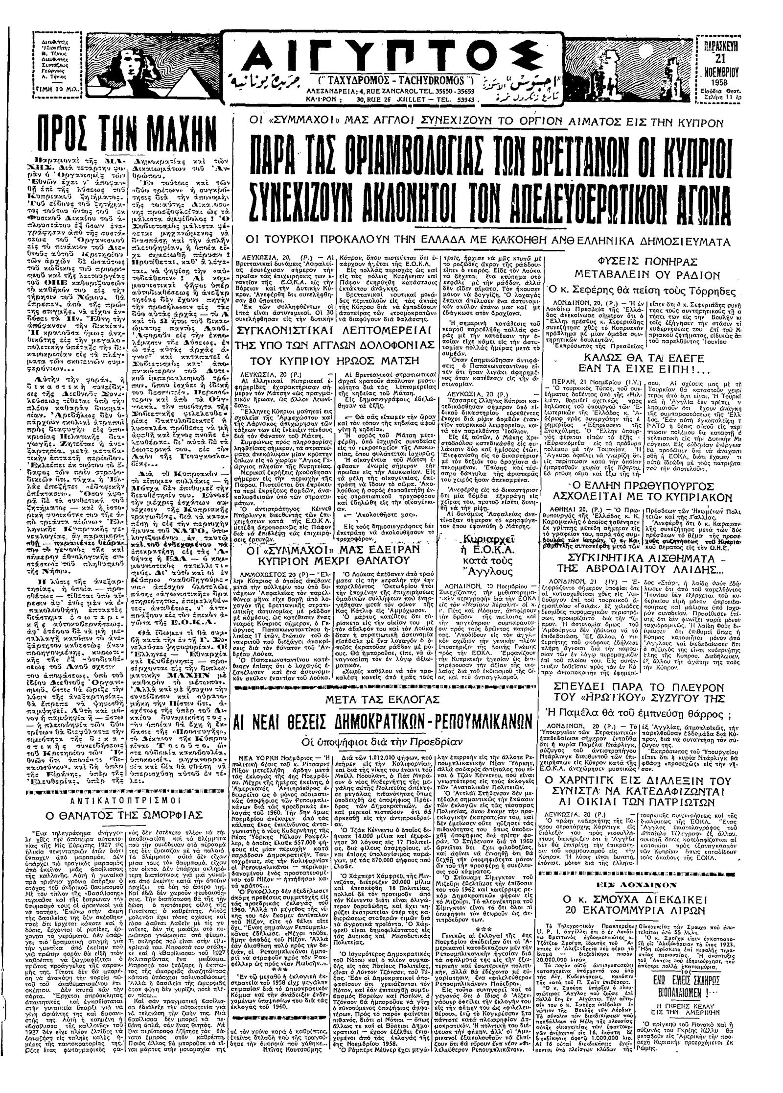 Ταχυδρόμος 21/11/1958