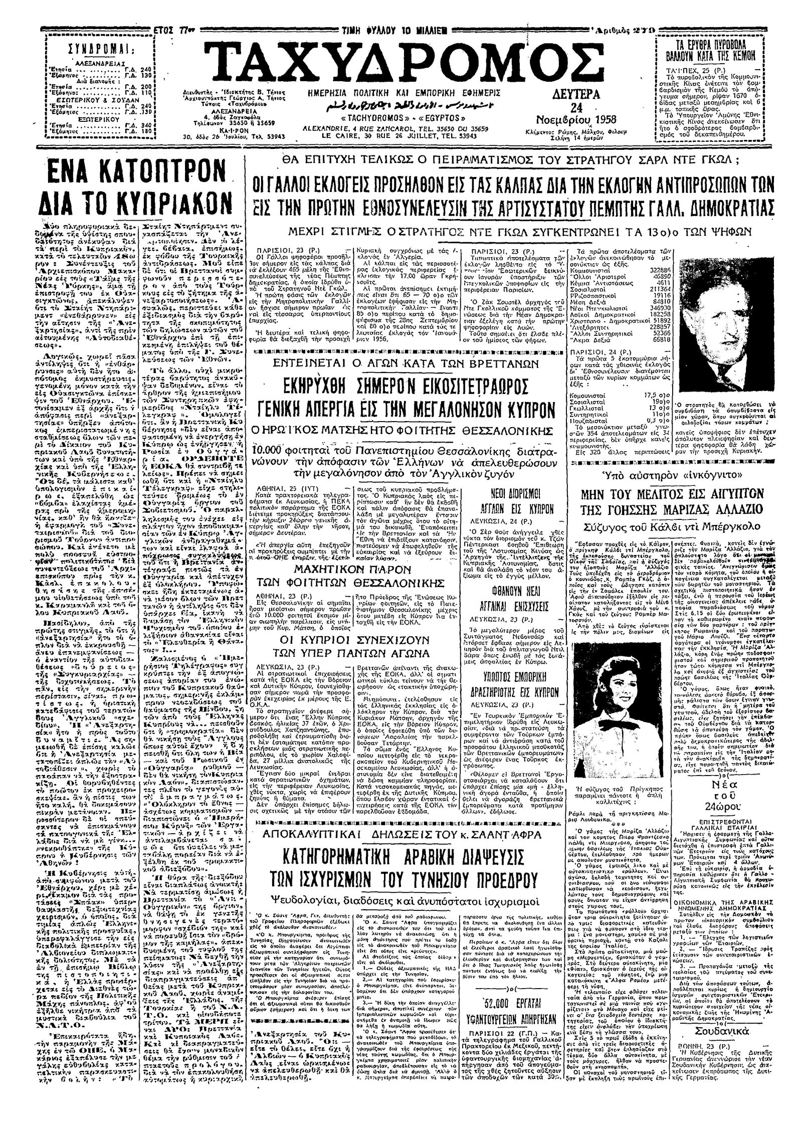 Ταχυδρόμος 24/11/1958