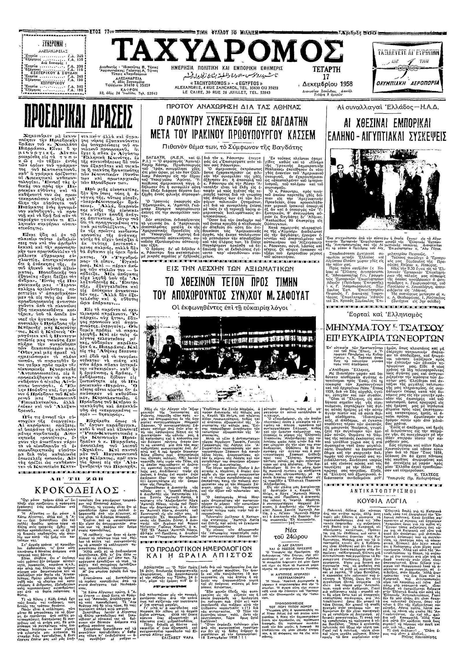 Ταχυδρόμος 17/12/1958