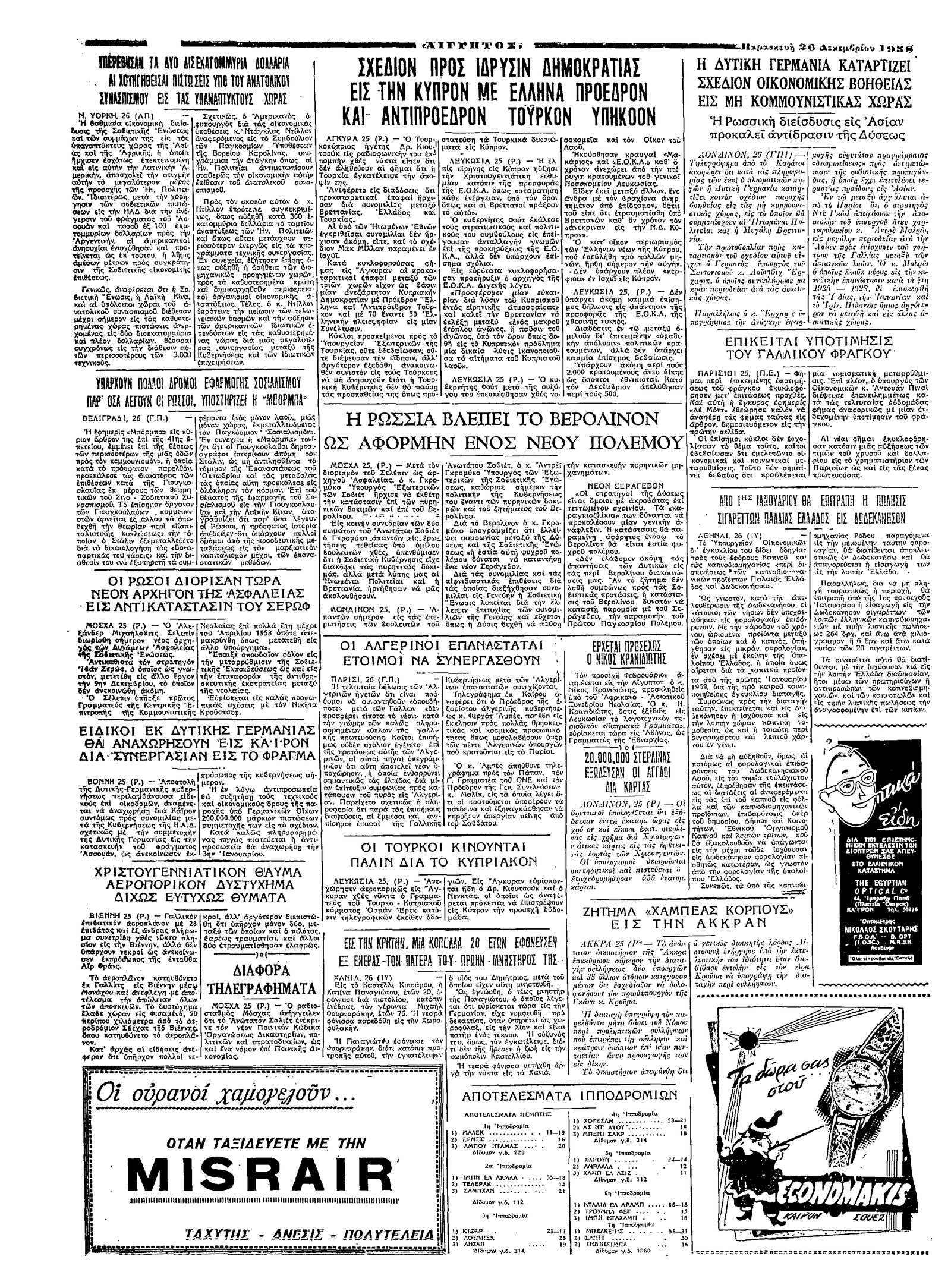 Ταχυδρόμος 26/12/1958