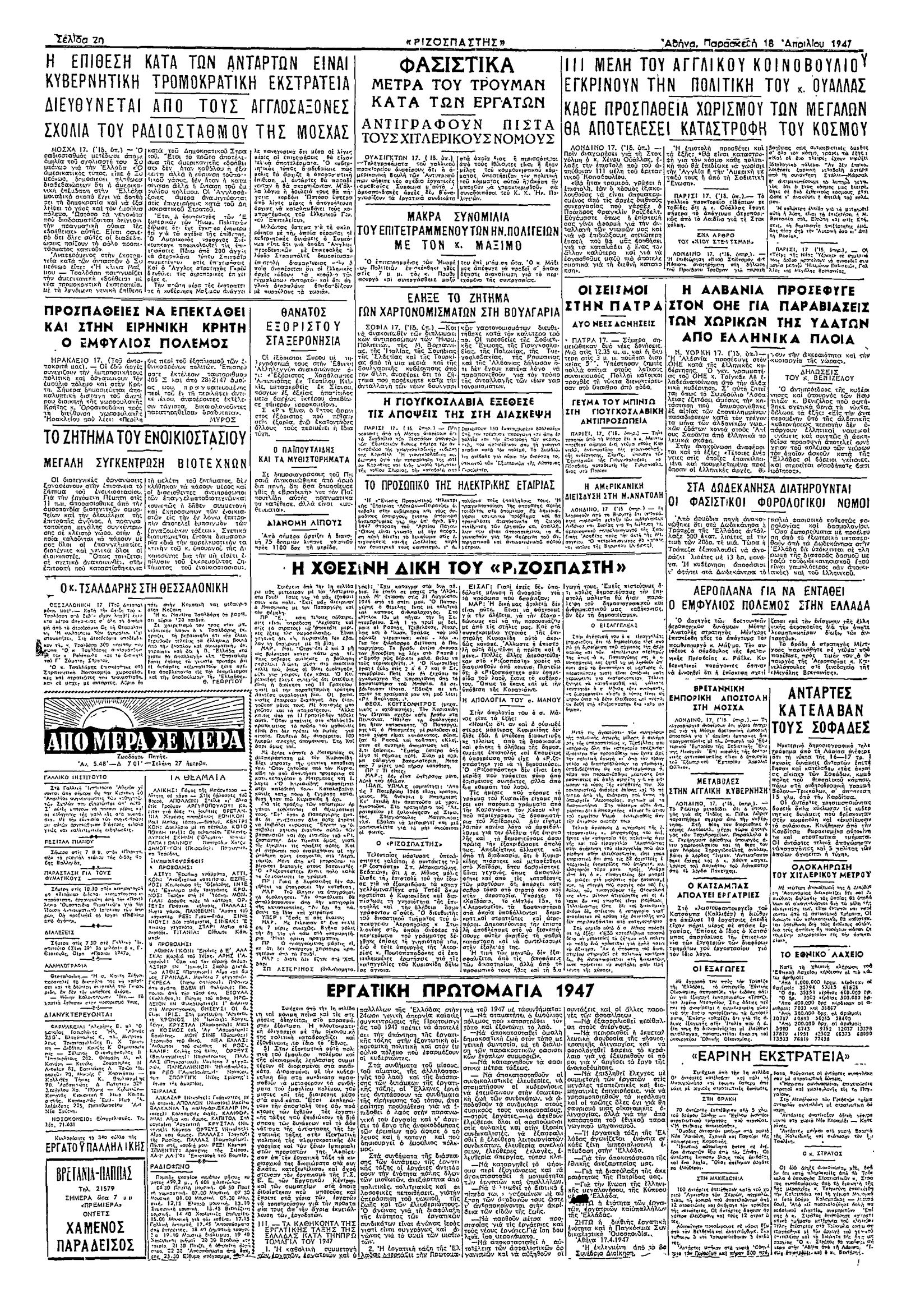 Ριζοσπάστης 18/04/1947