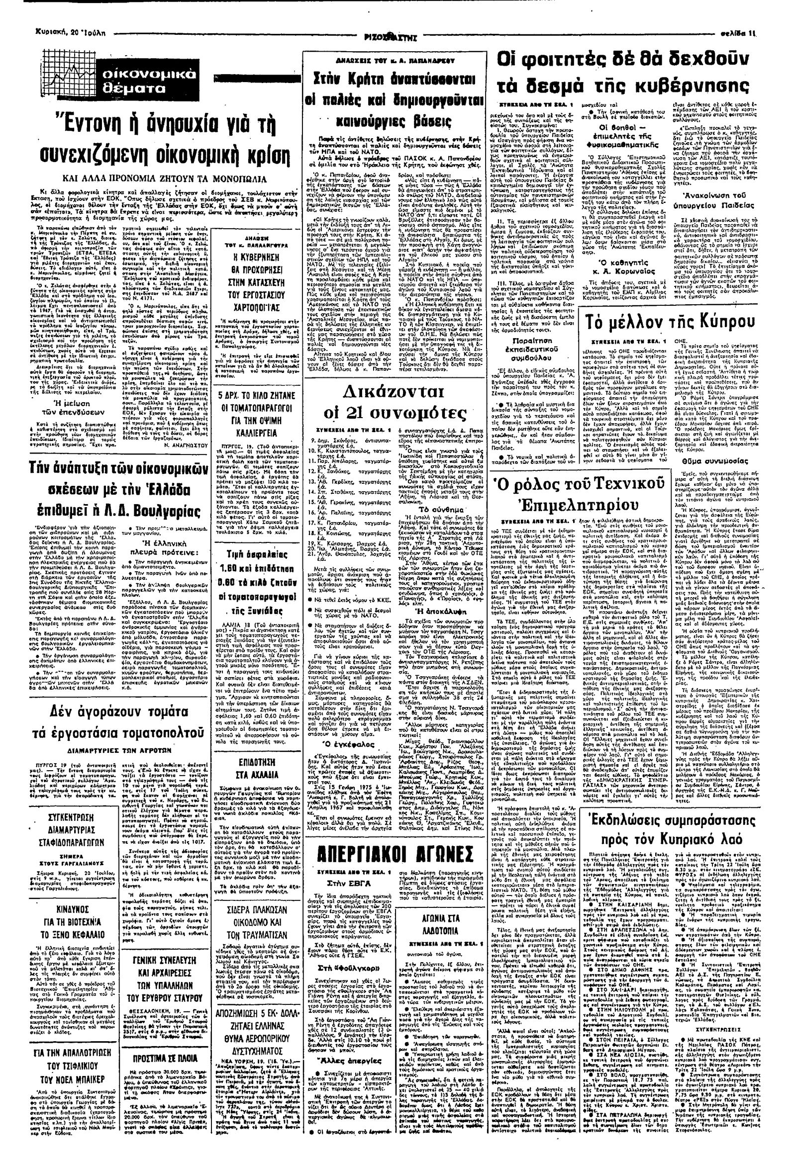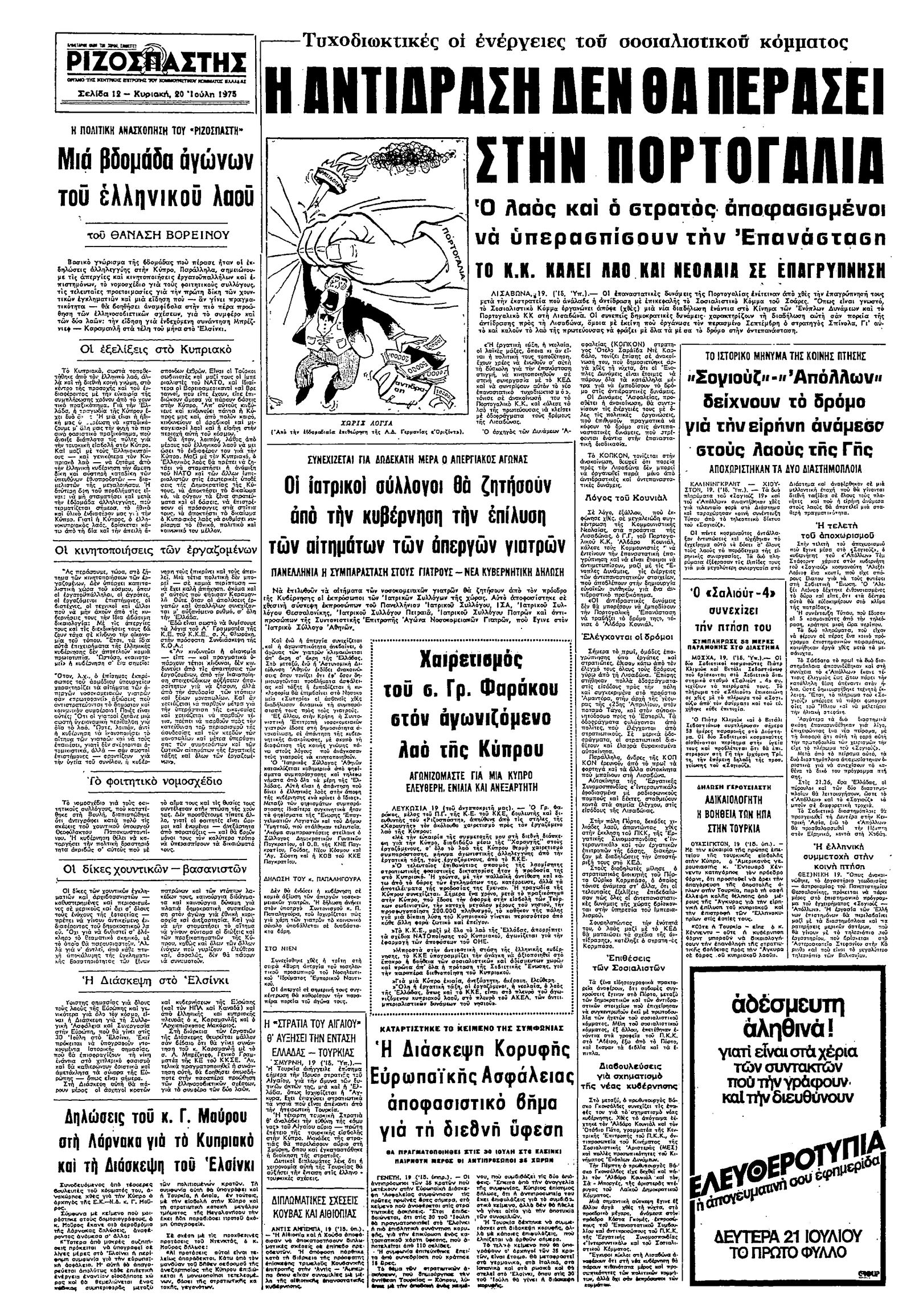 Ριζοσπάστης 20/07/1975