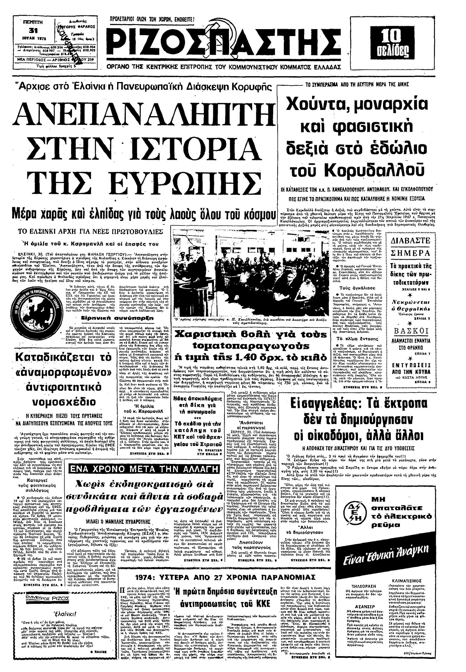 Ριζοσπάστης 31/07/1975