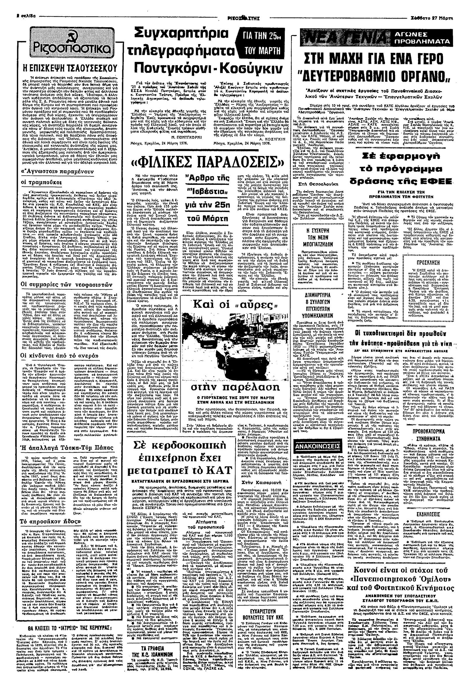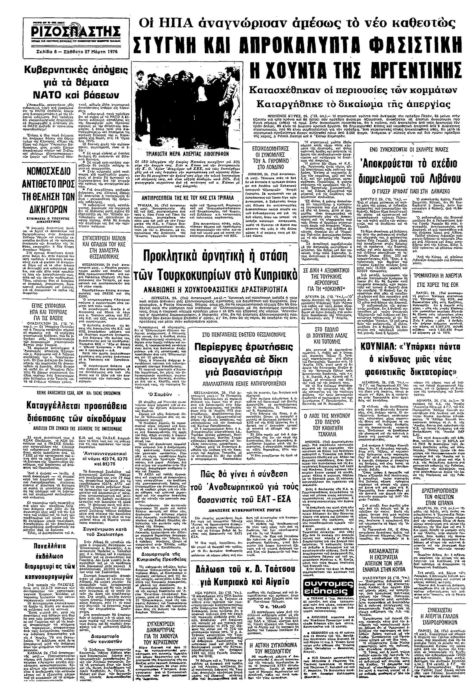 Ριζοσπάστης 27/03/1976