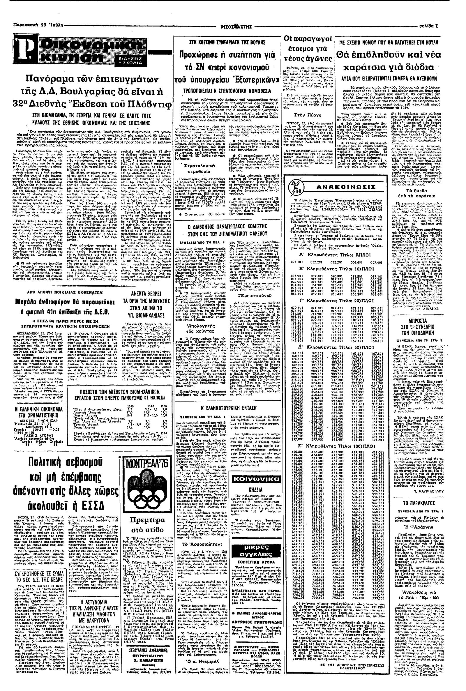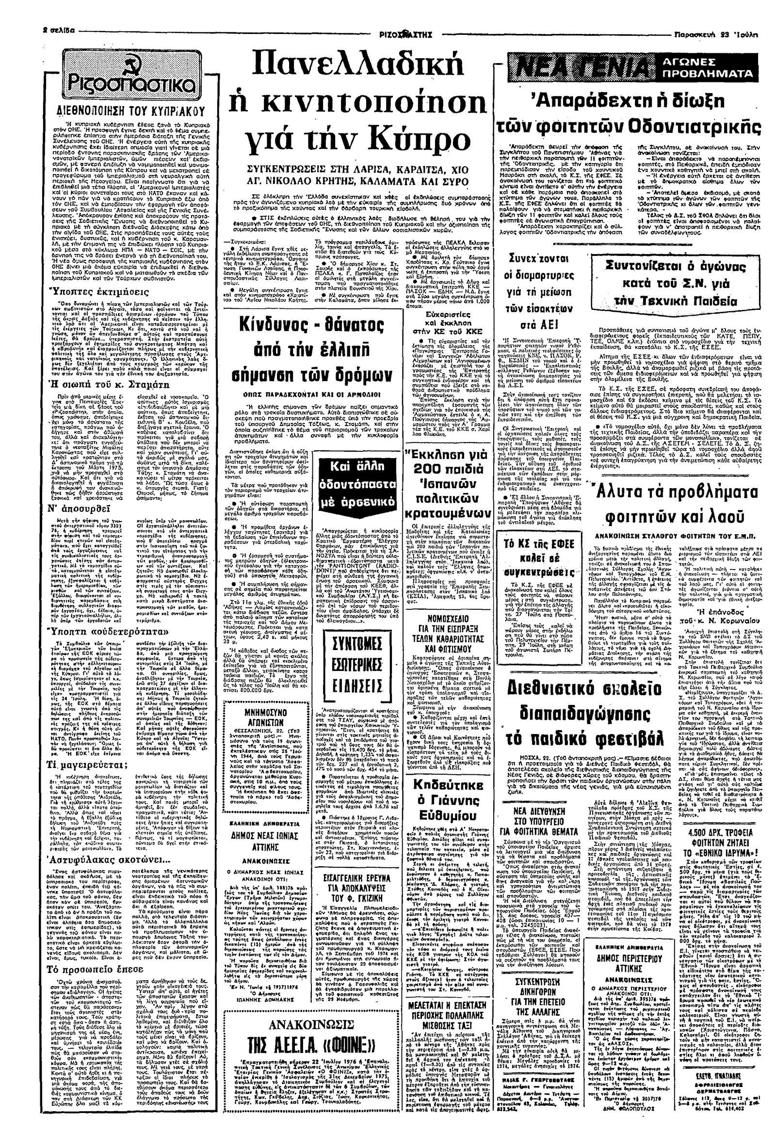 Ριζοσπάστης 23/07/1976