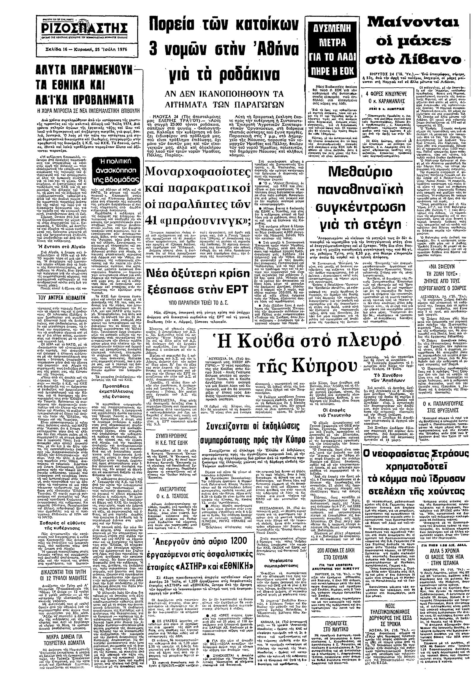 Ριζοσπάστης 25/07/1976