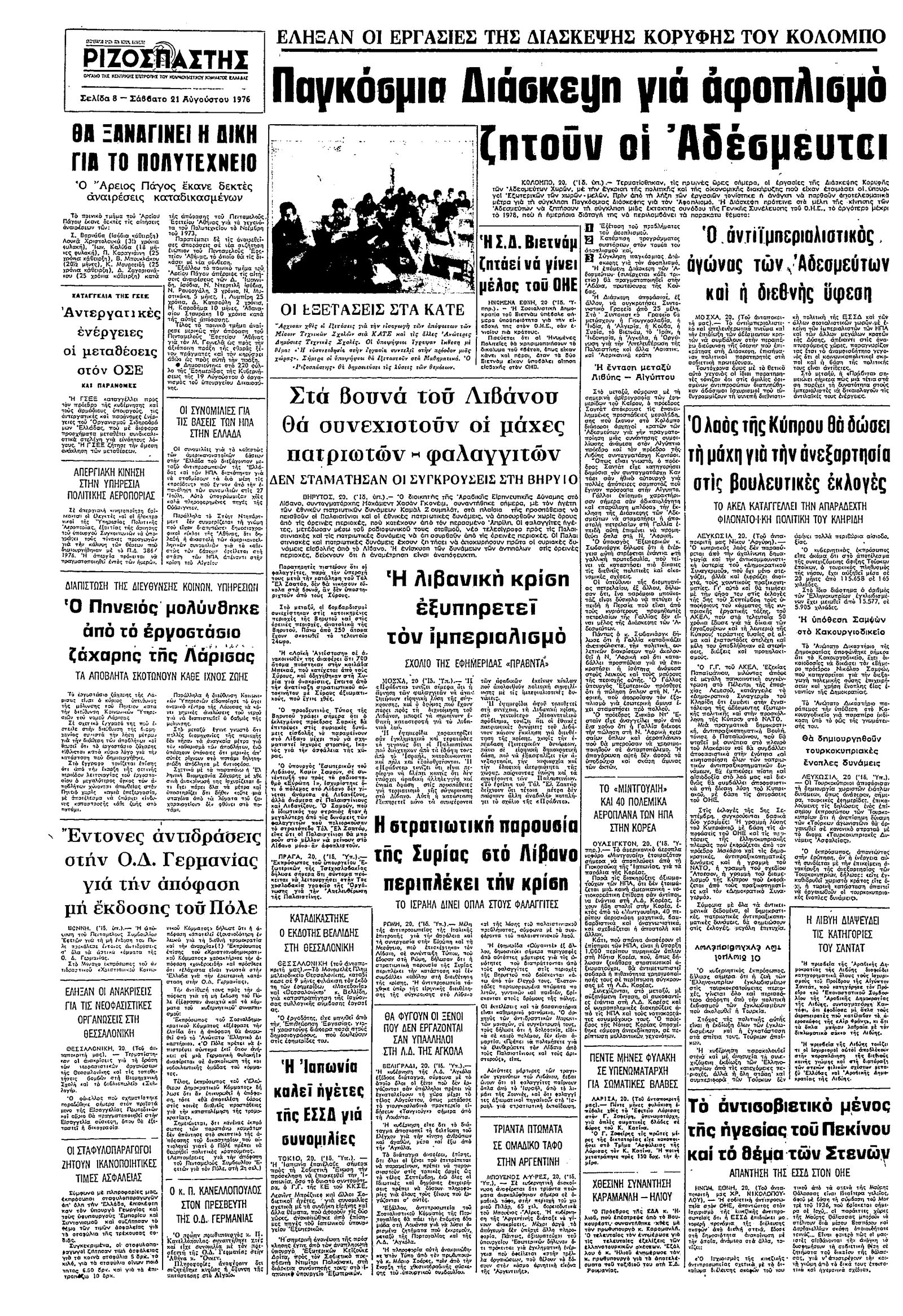 Ριζοσπάστης 21/08/1976