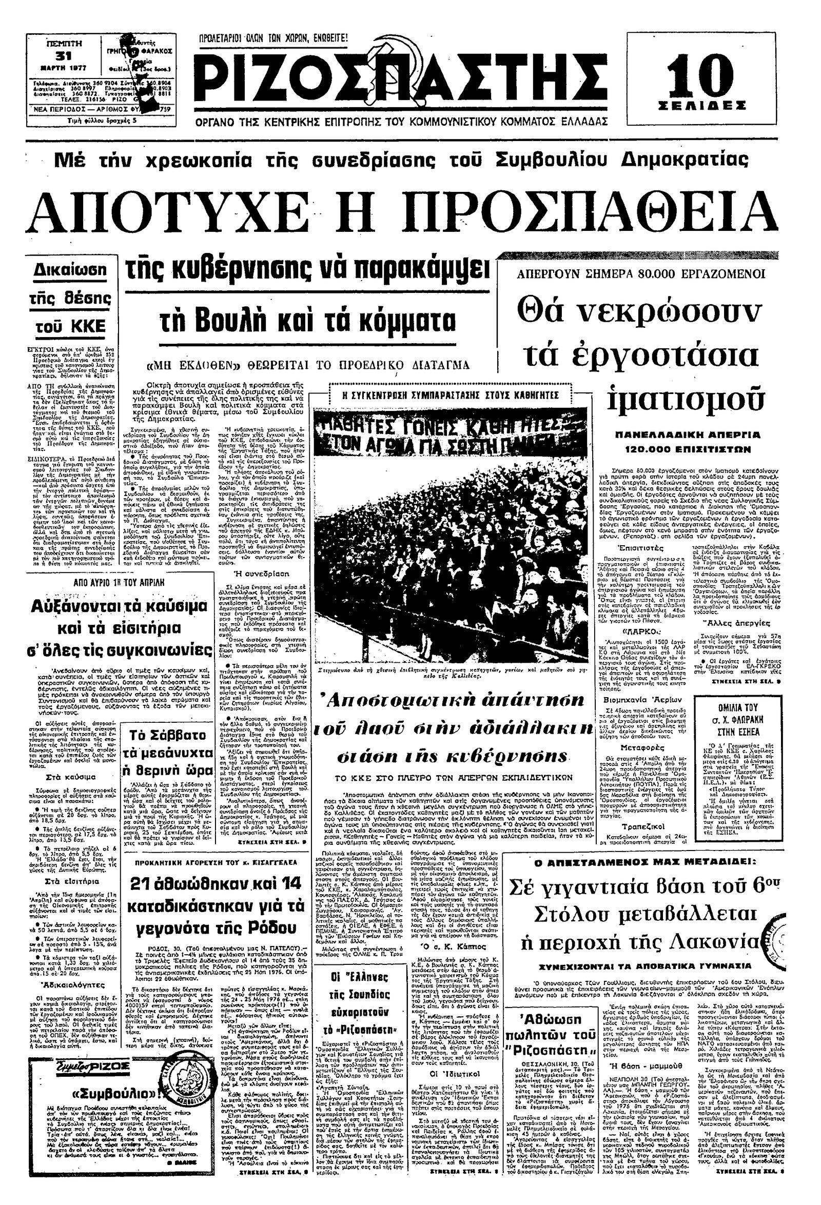 Ριζοσπάστης 31/03/1977