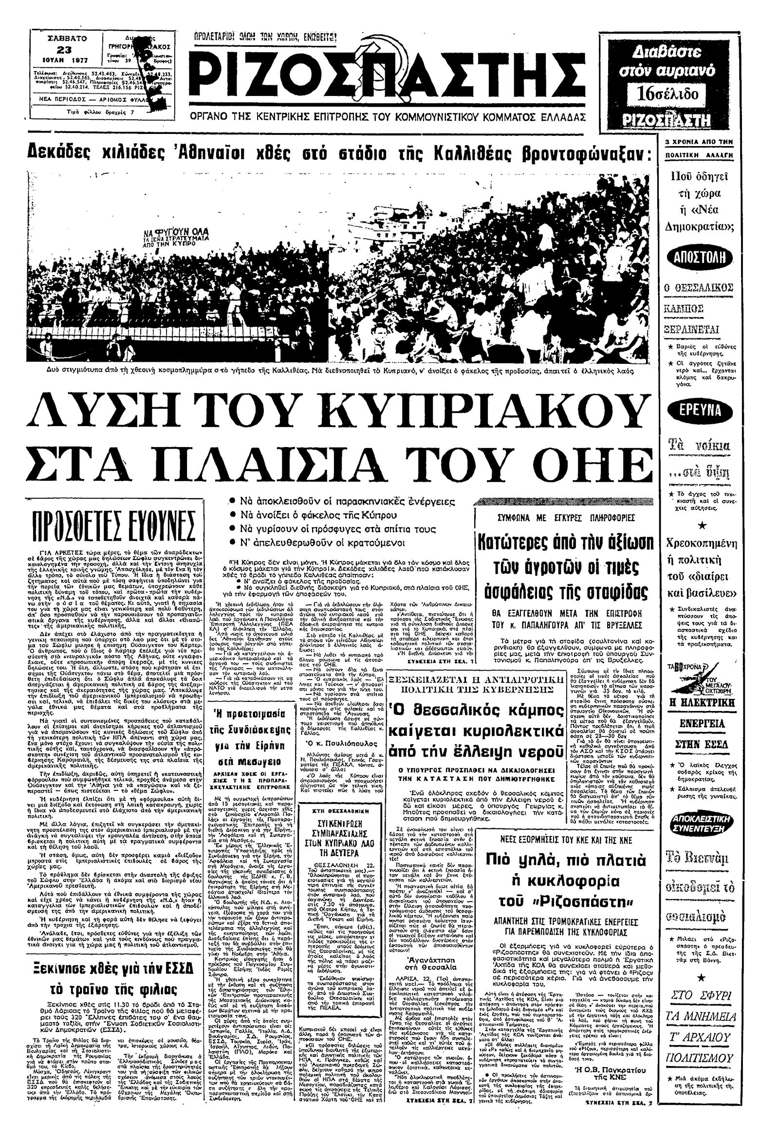 Ριζοσπάστης 23/07/1977
