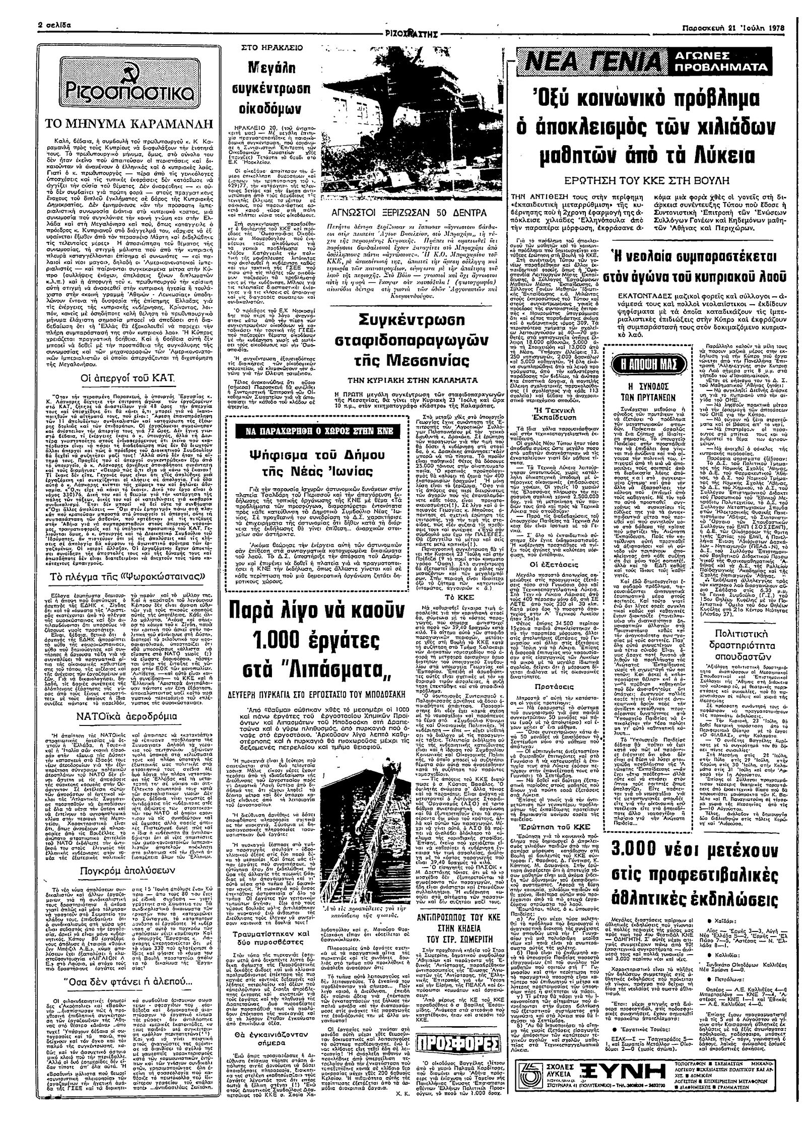Ριζοσπάστης 21/07/1978