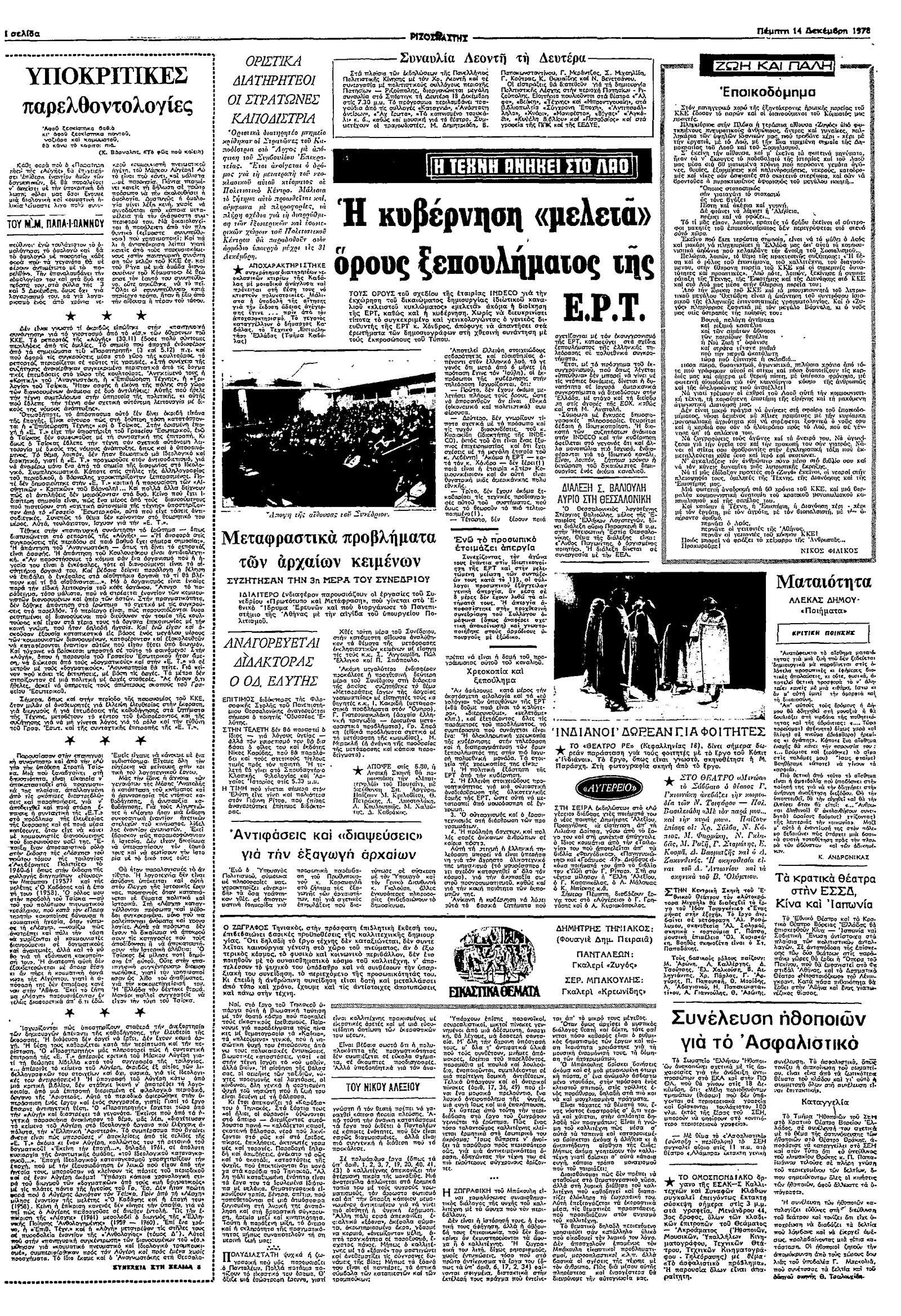 Ριζοσπάστης 14/12/1978