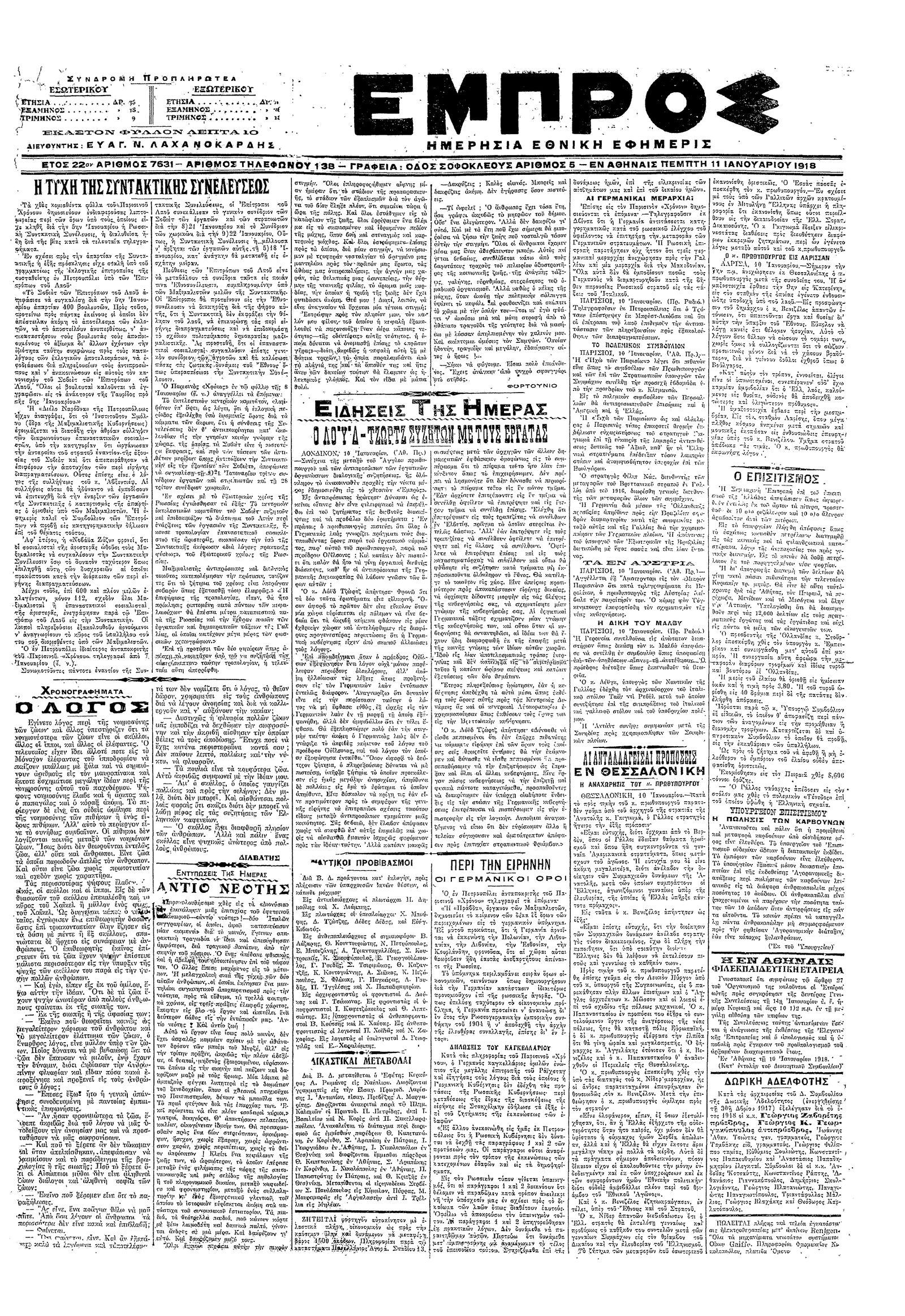 Εμπρός 11/01/1918