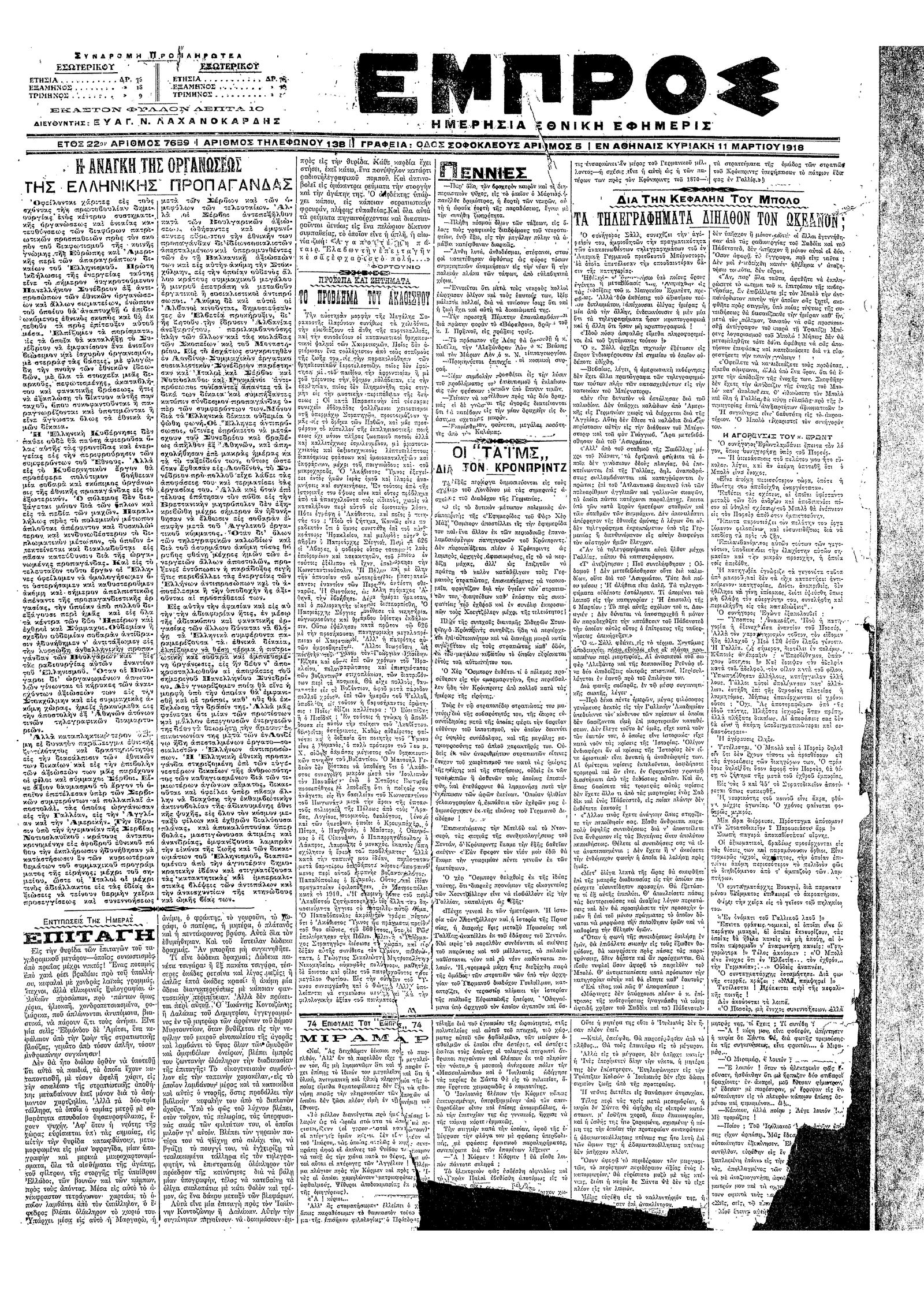 Εμπρός 11/03/1918