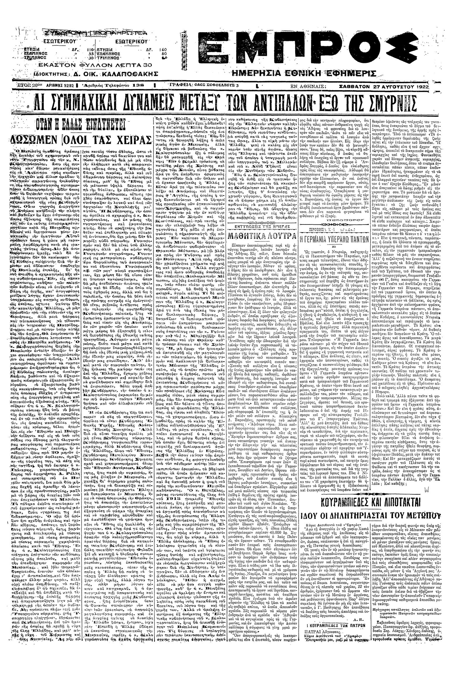 Εμπρός 27/08/1922