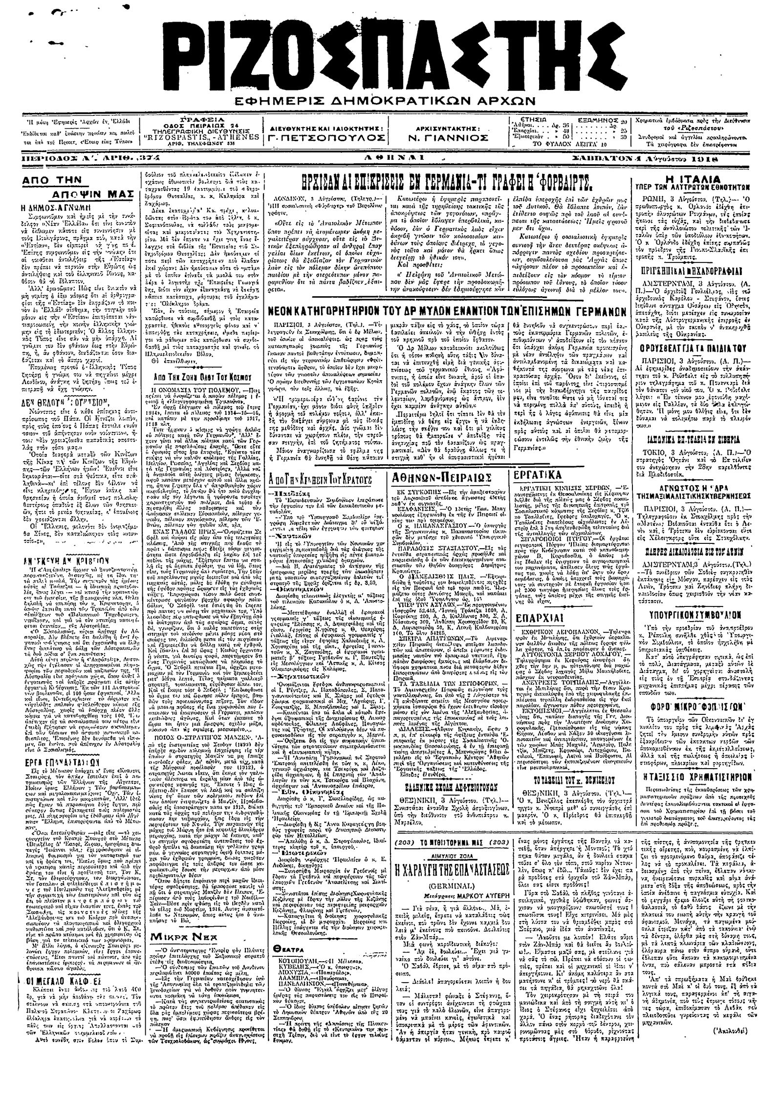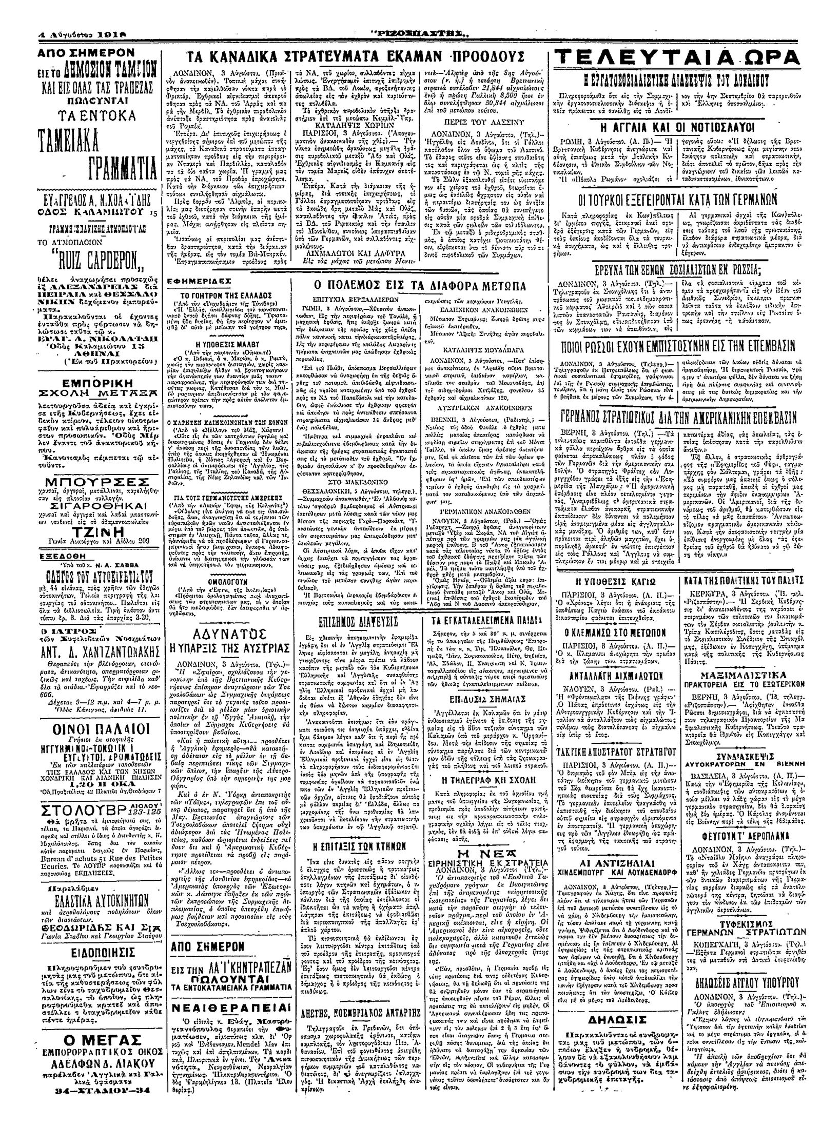 Ριζοσπάστης 04/08/1918