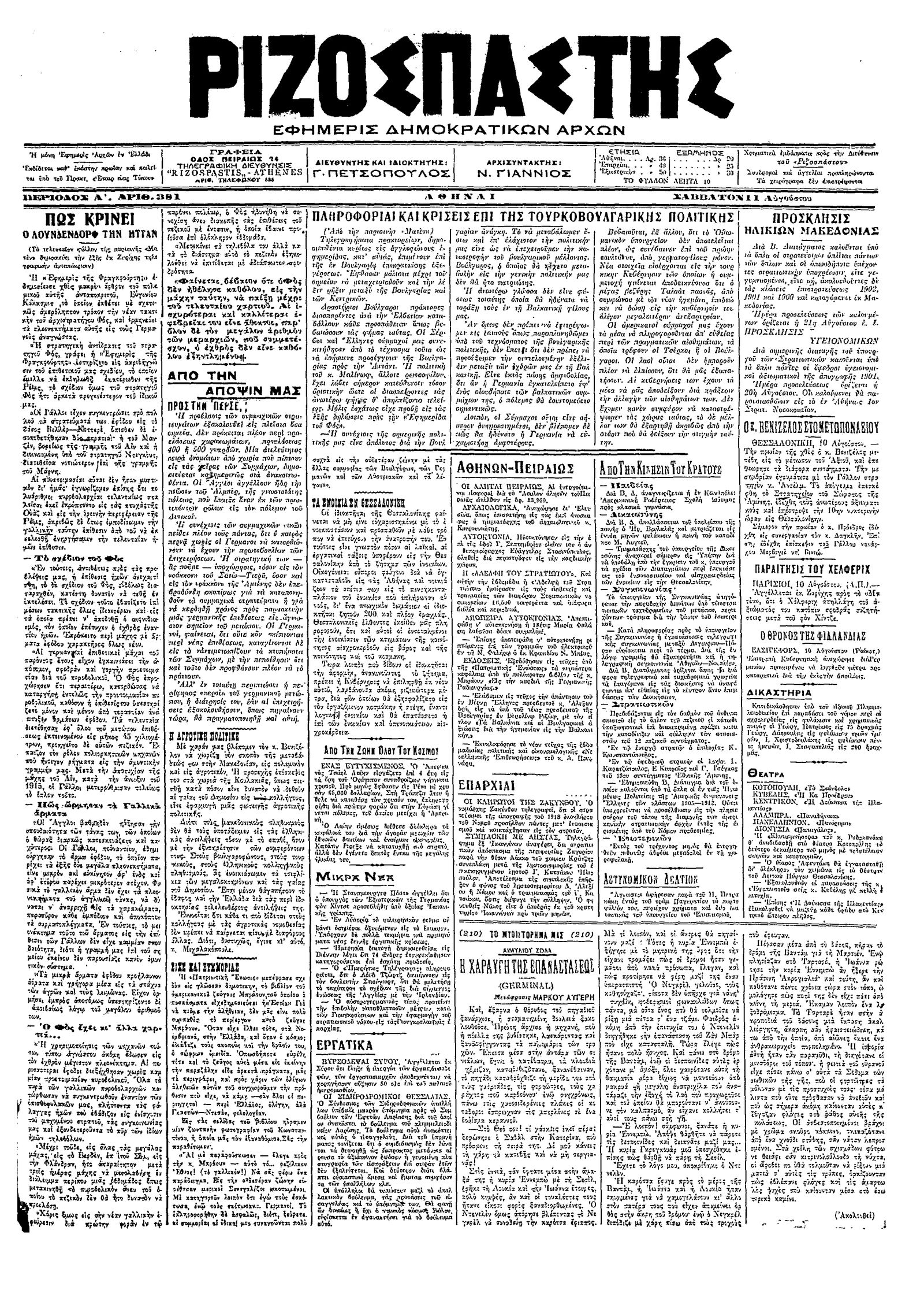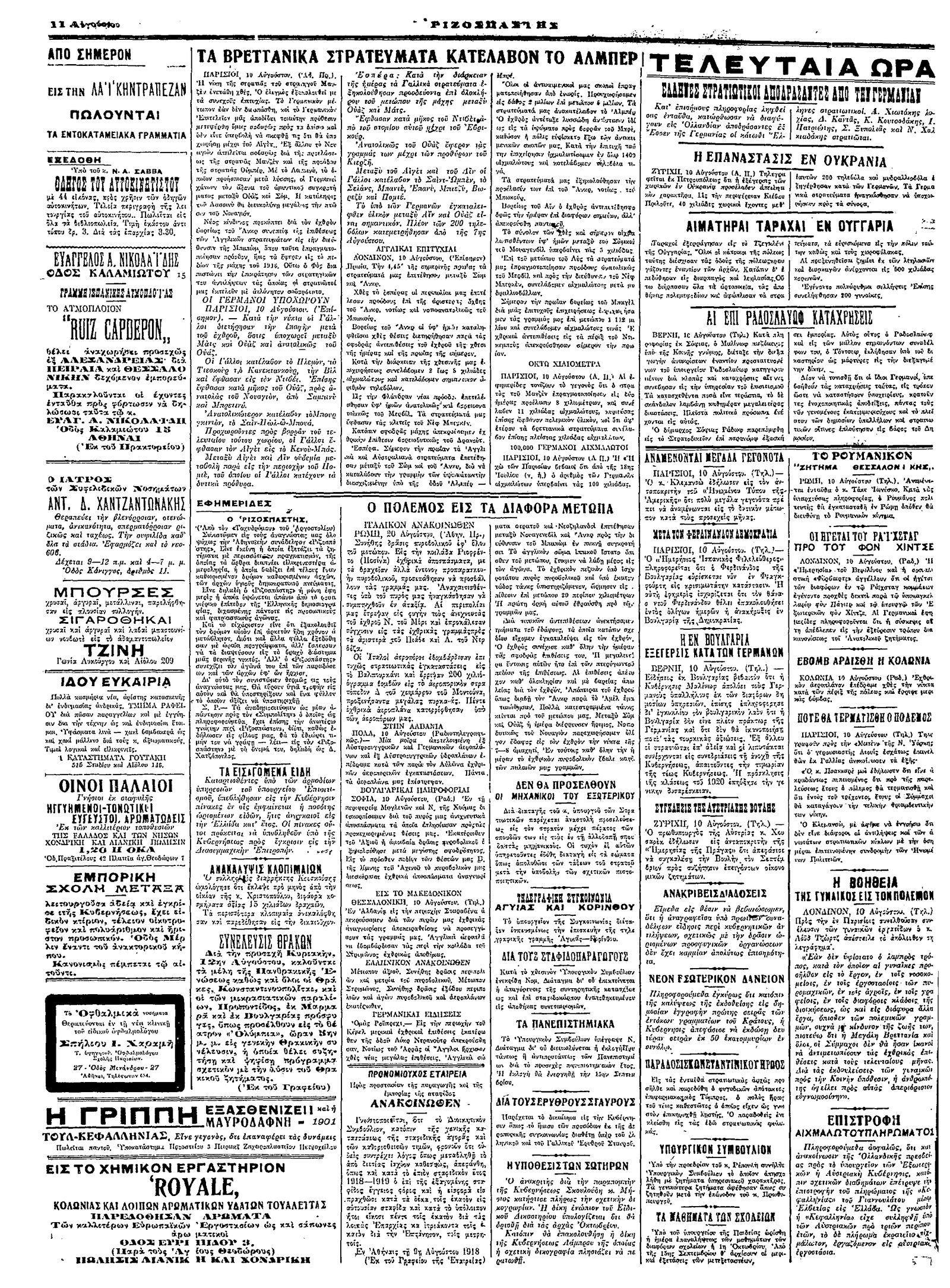 Ριζοσπάστης 11/08/1918