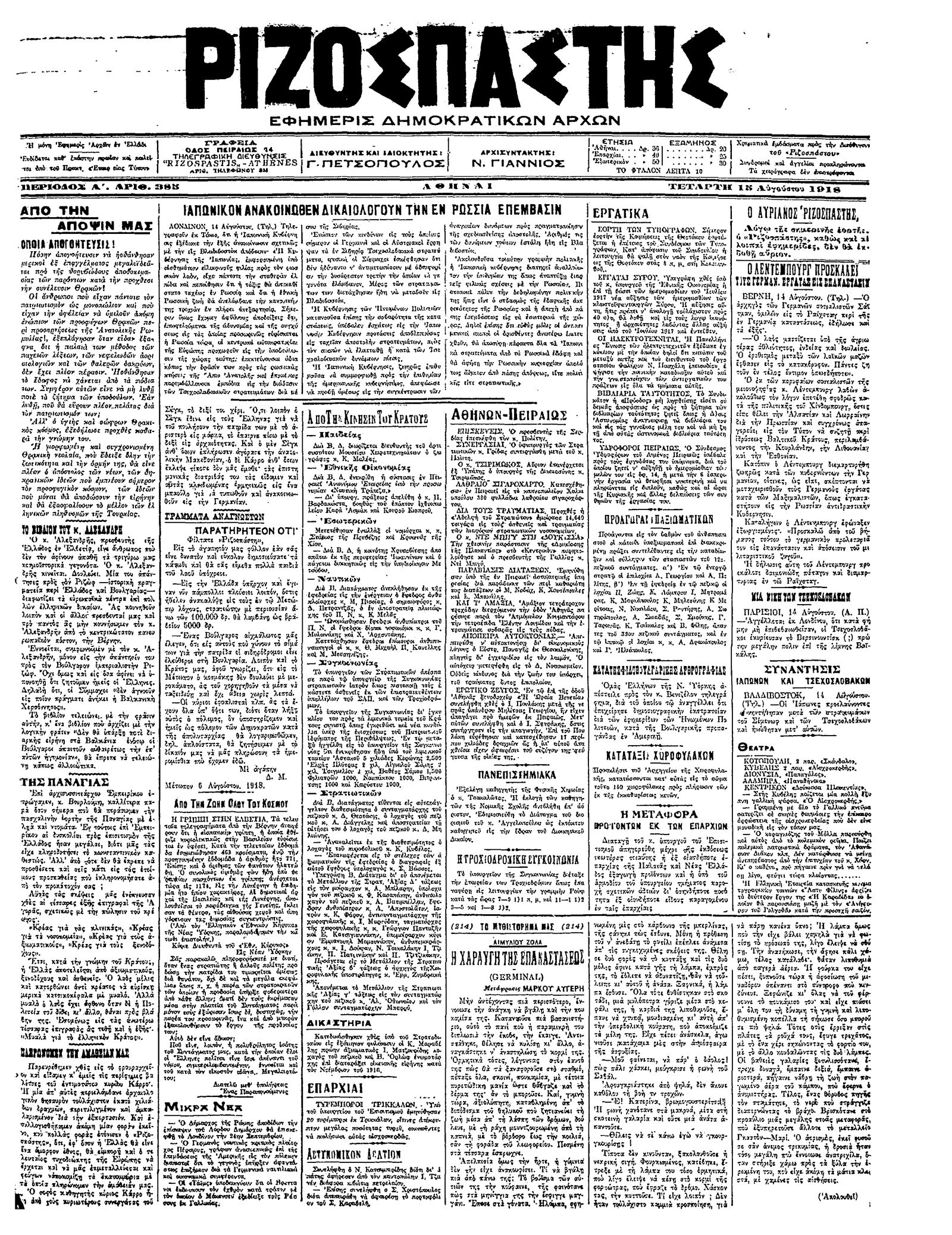 Ριζοσπάστης 15/08/1918
