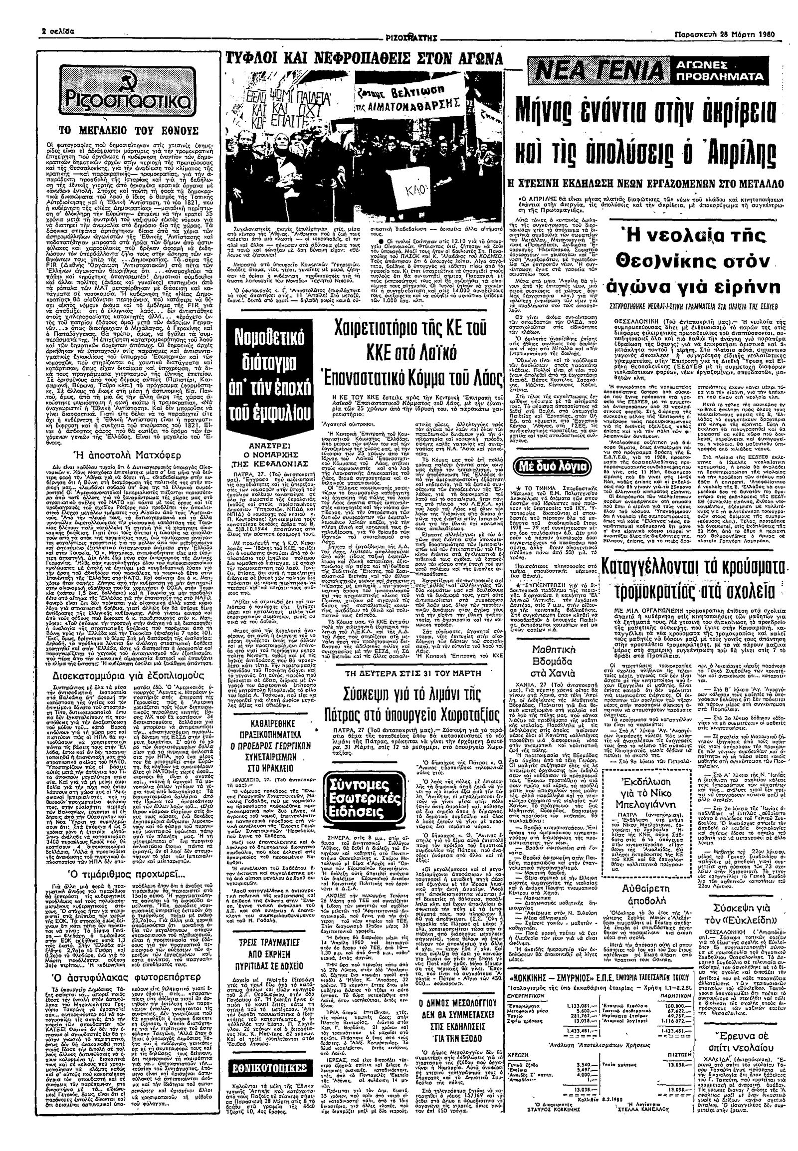 Ριζοσπάστης 28/03/1980