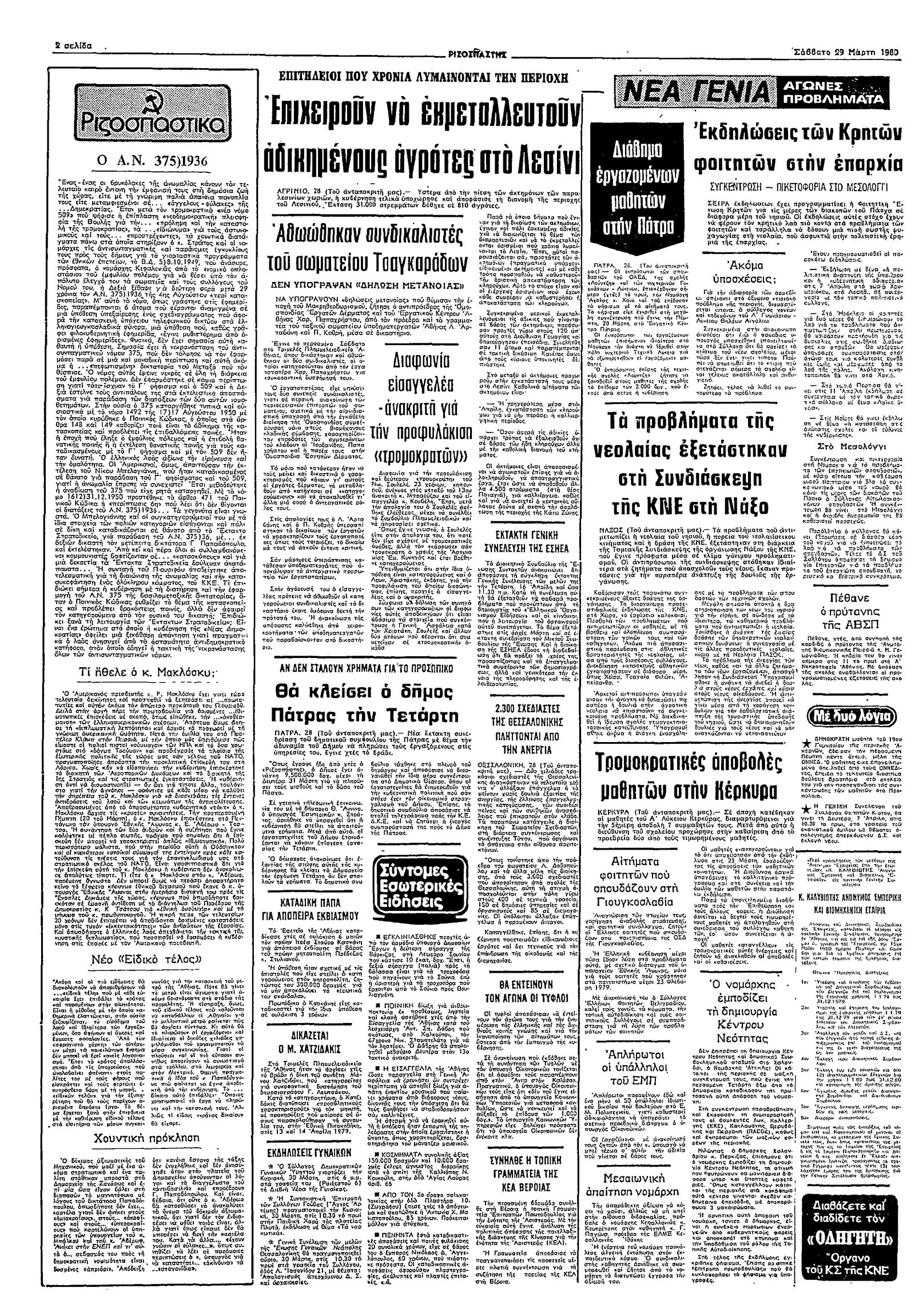 Ριζοσπάστης 29/03/1980