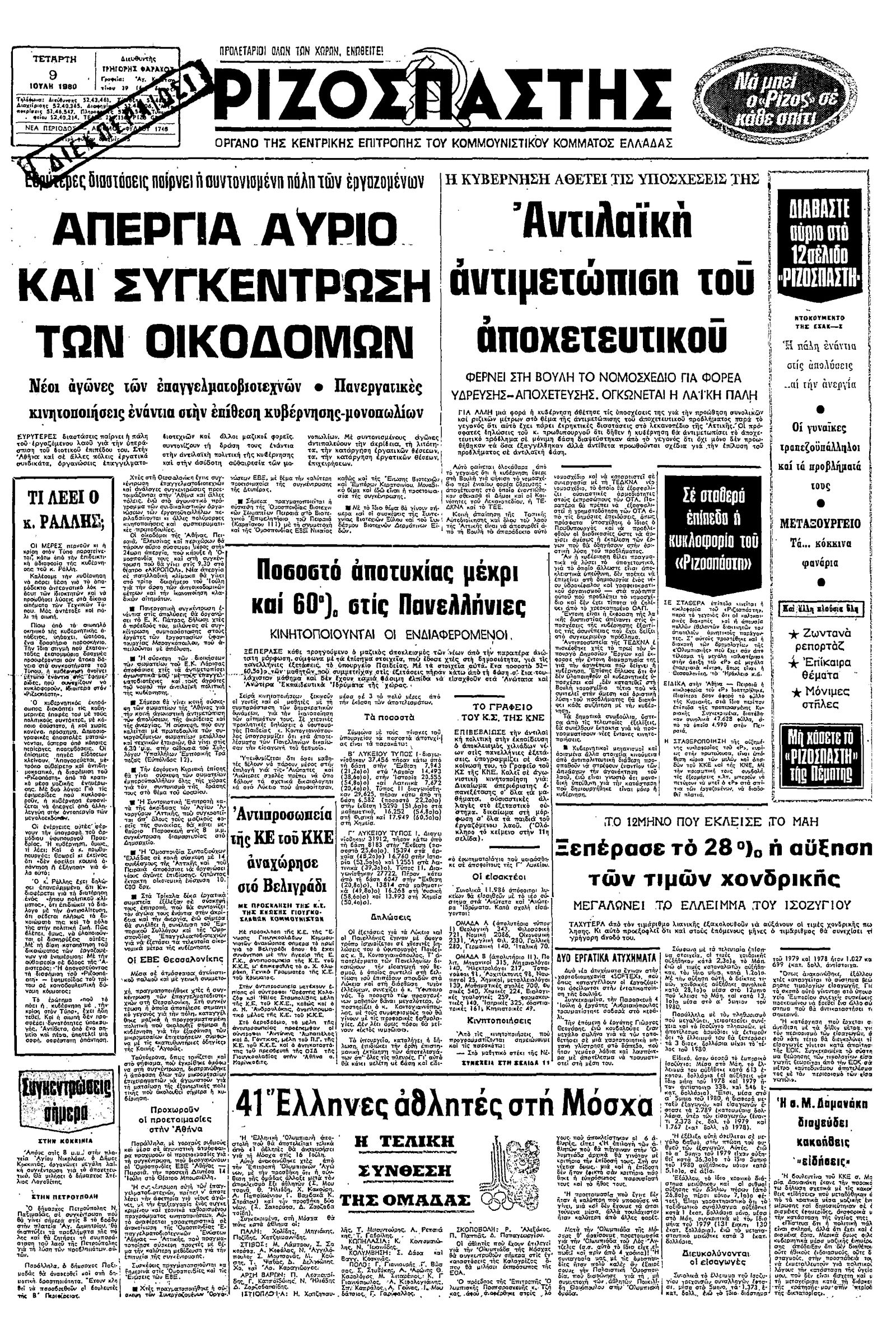 Ριζοσπάστης 09/07/1980