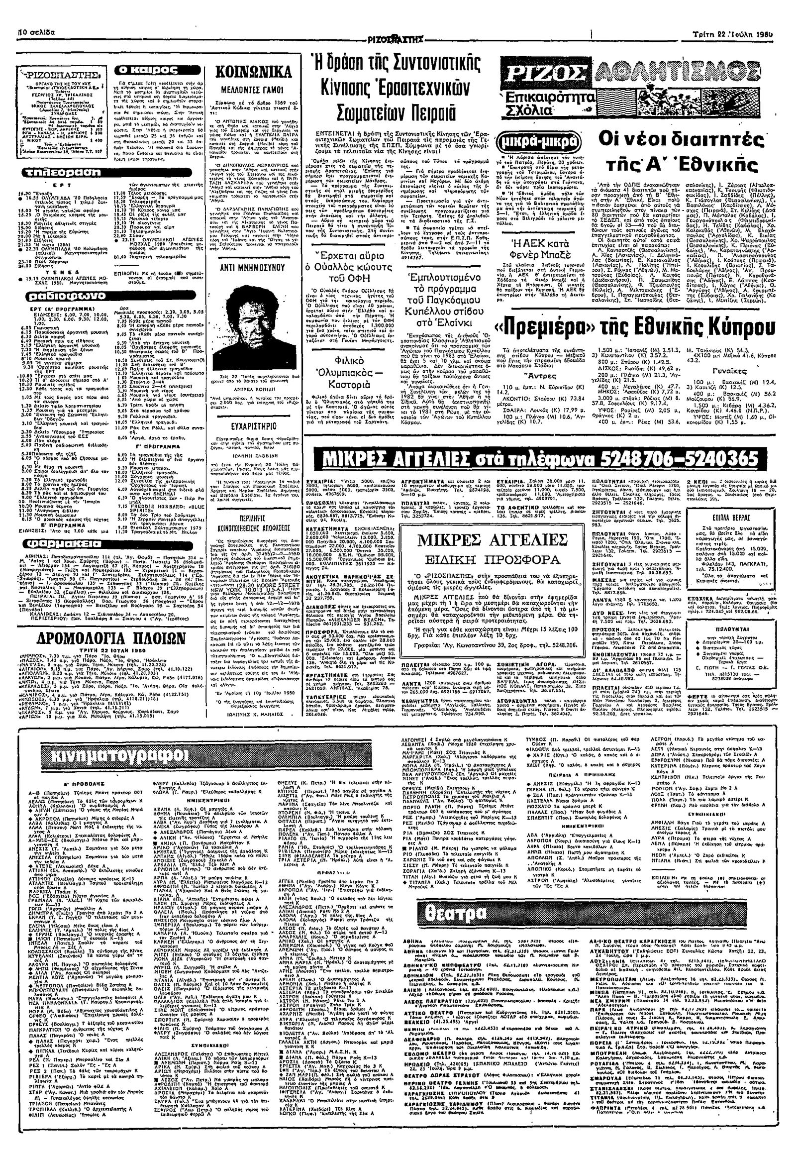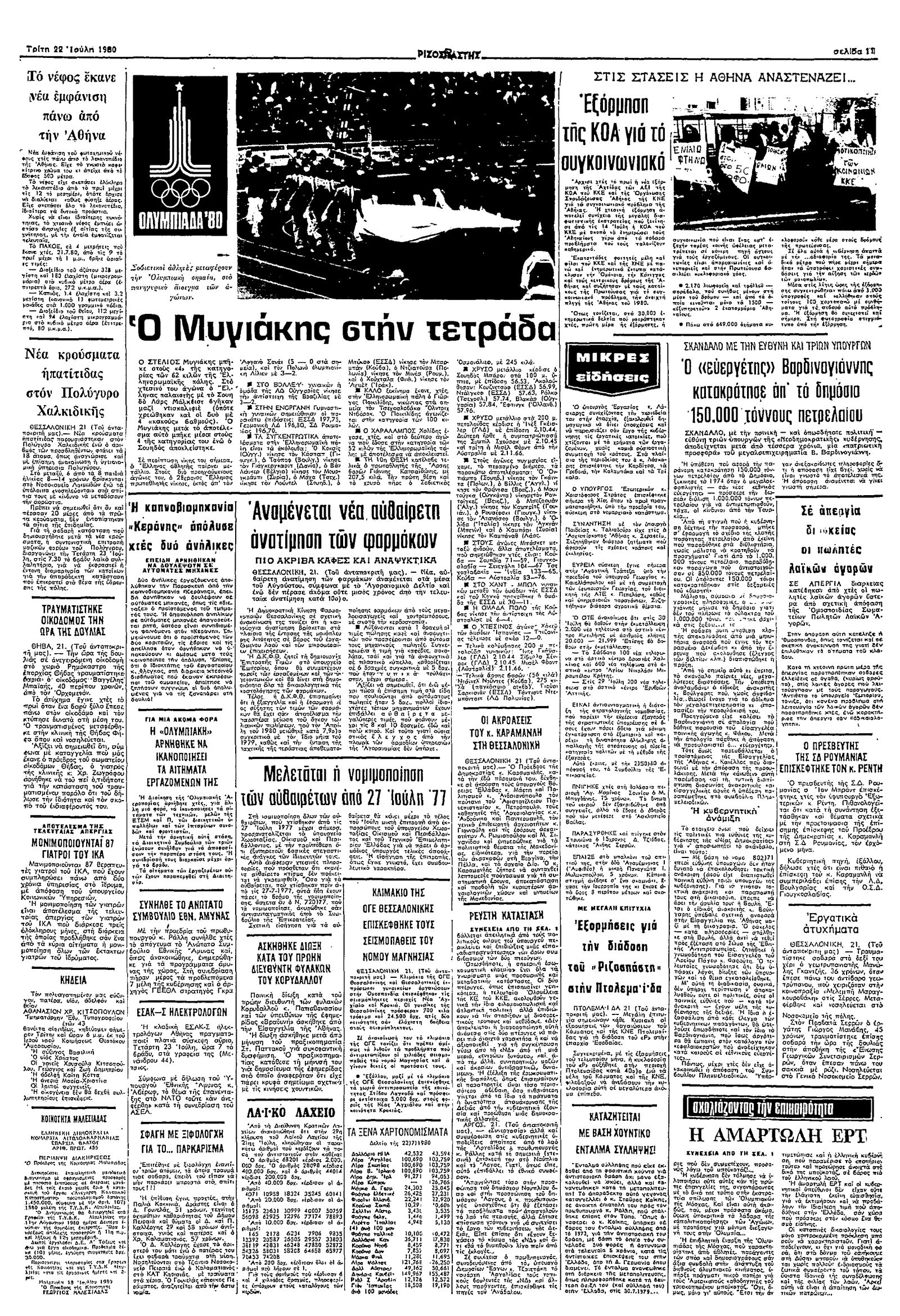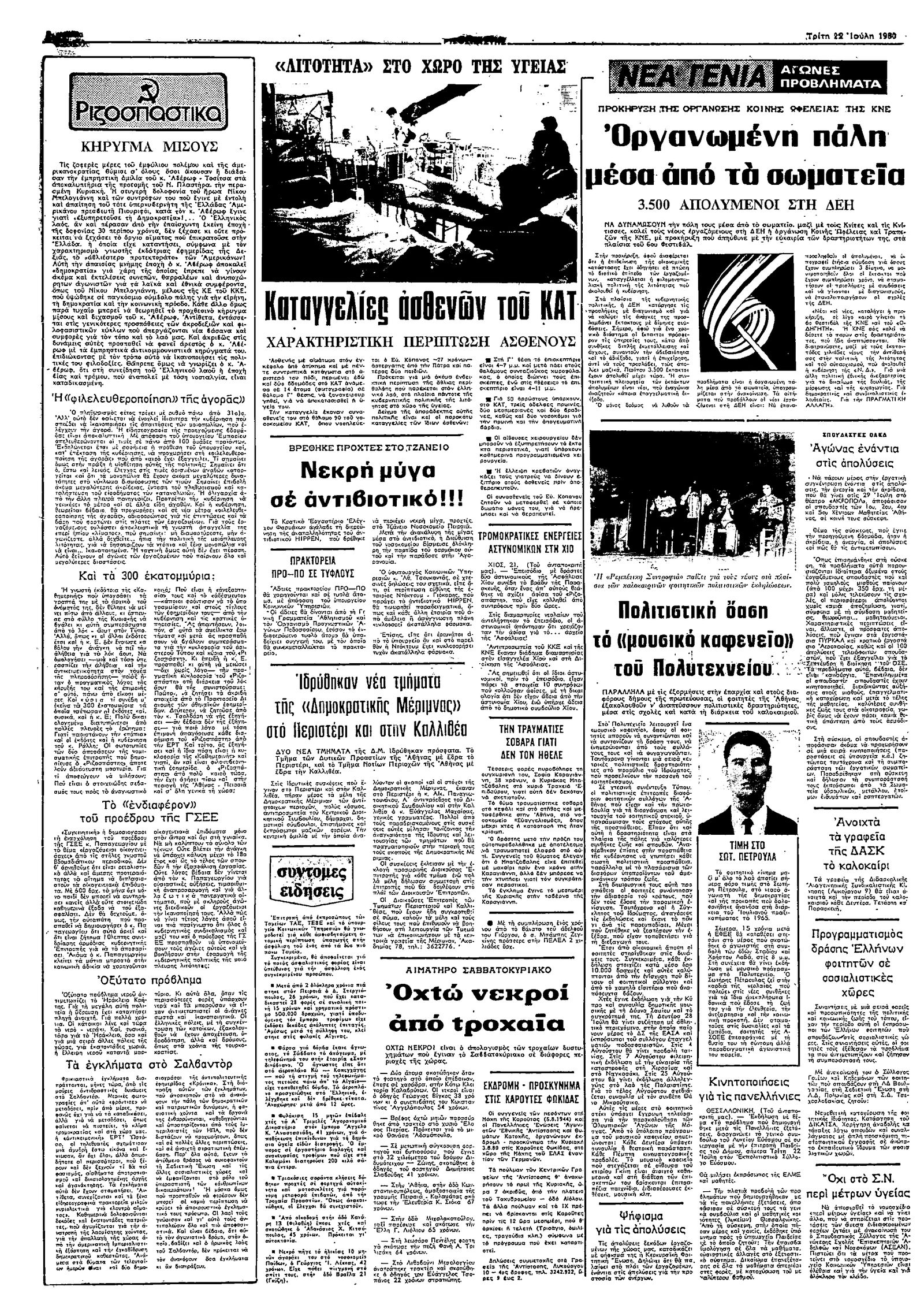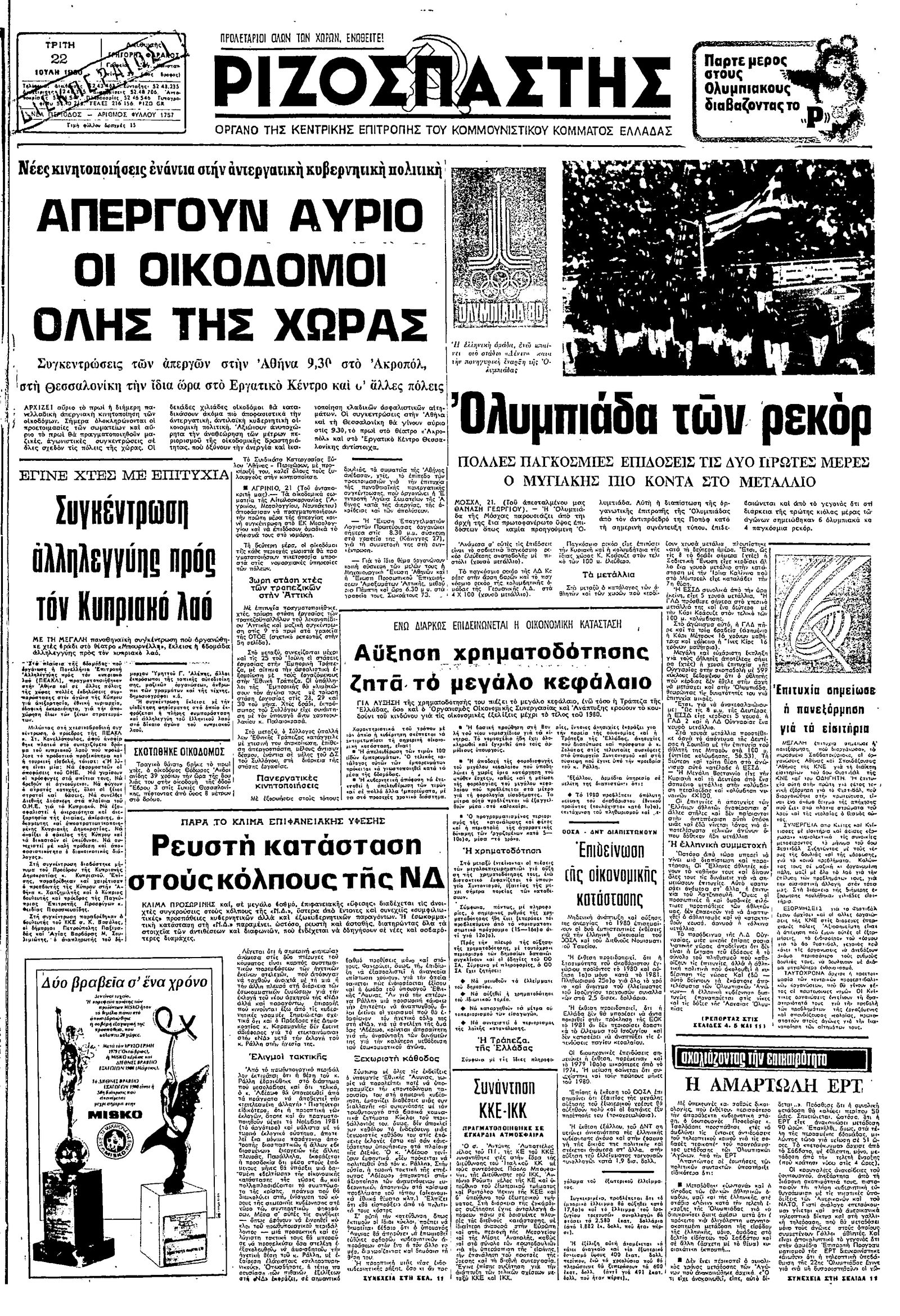 Ριζοσπάστης 22/07/1980