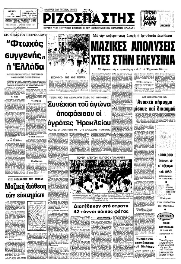 Ριζοσπάστης 14/08/1980