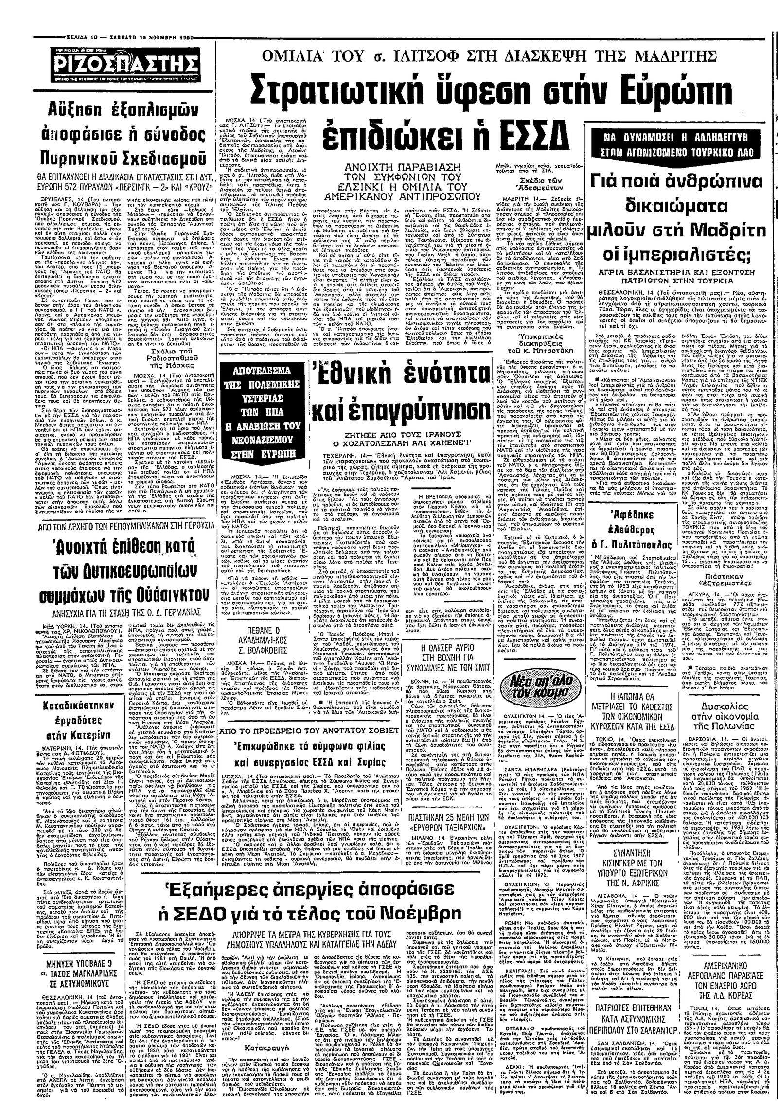 Ριζοσπάστης 15/11/1980