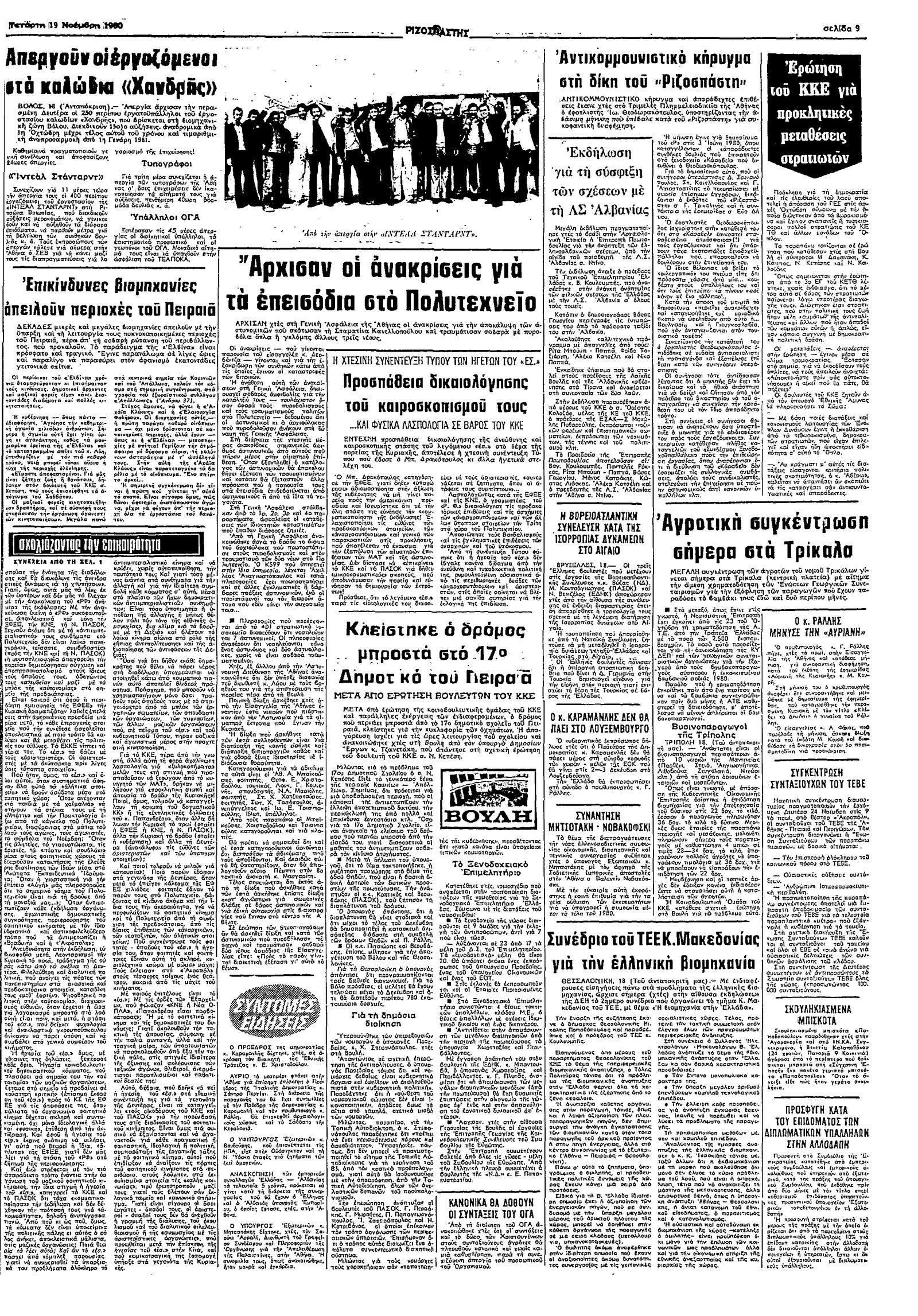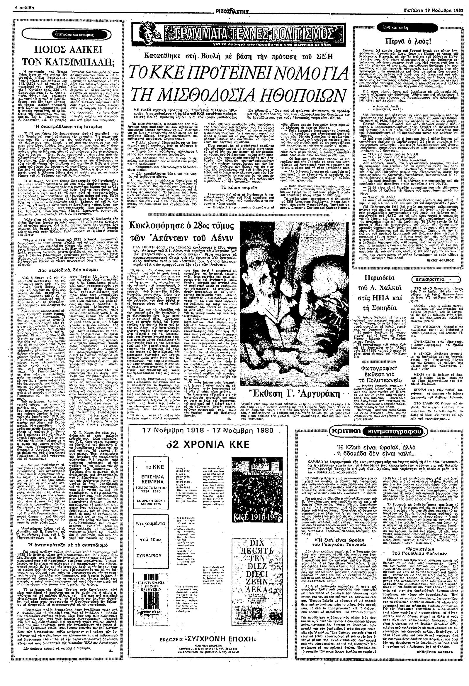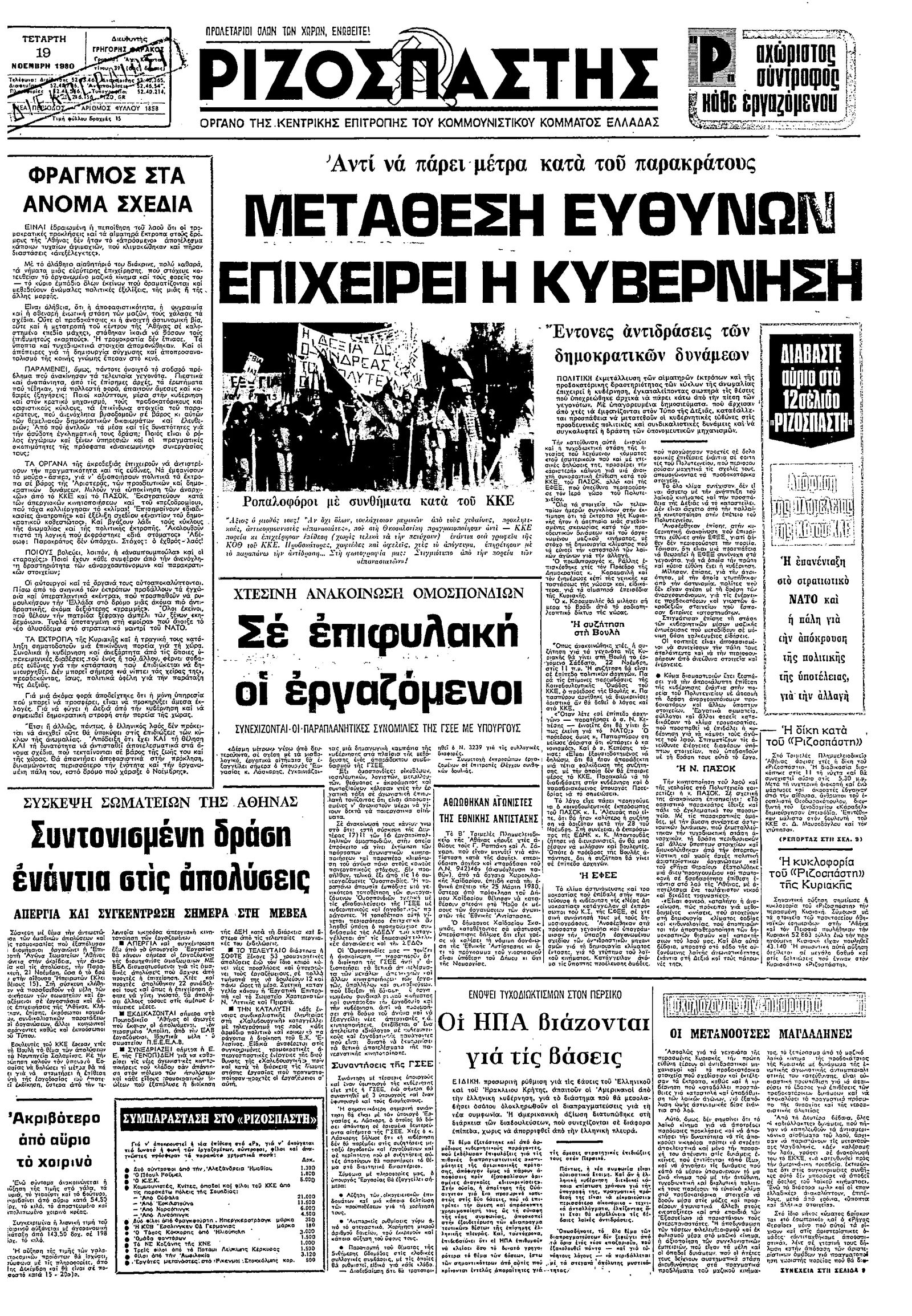 Ριζοσπάστης 19/11/1980