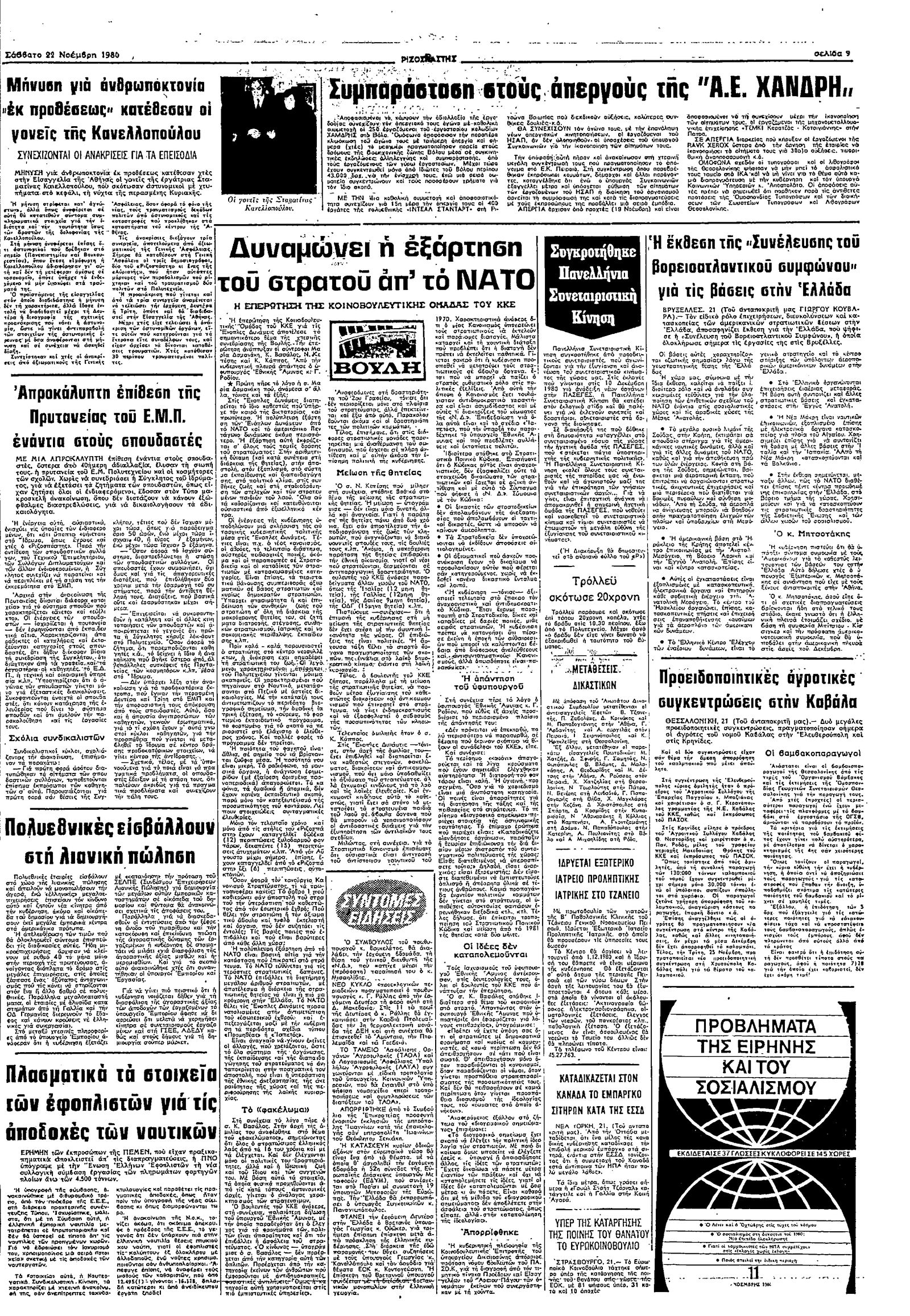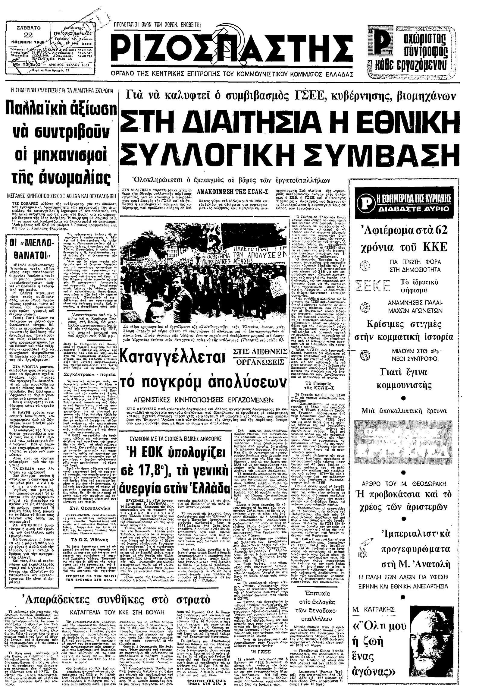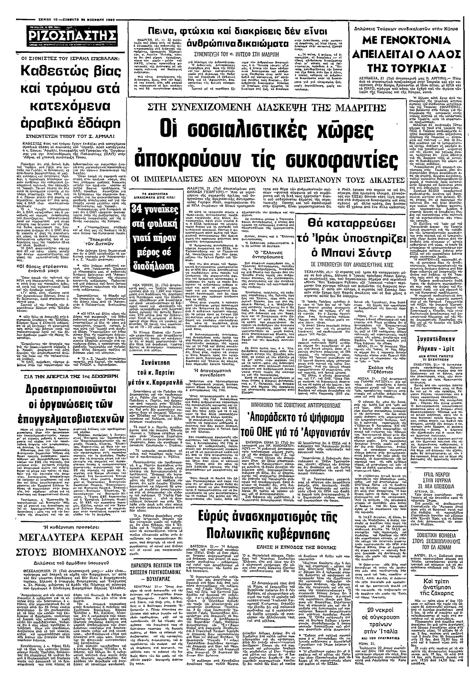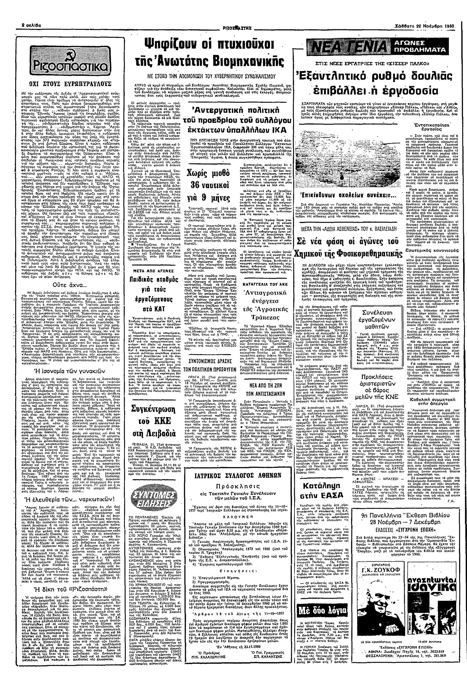 Ριζοσπάστης 22/11/1980
