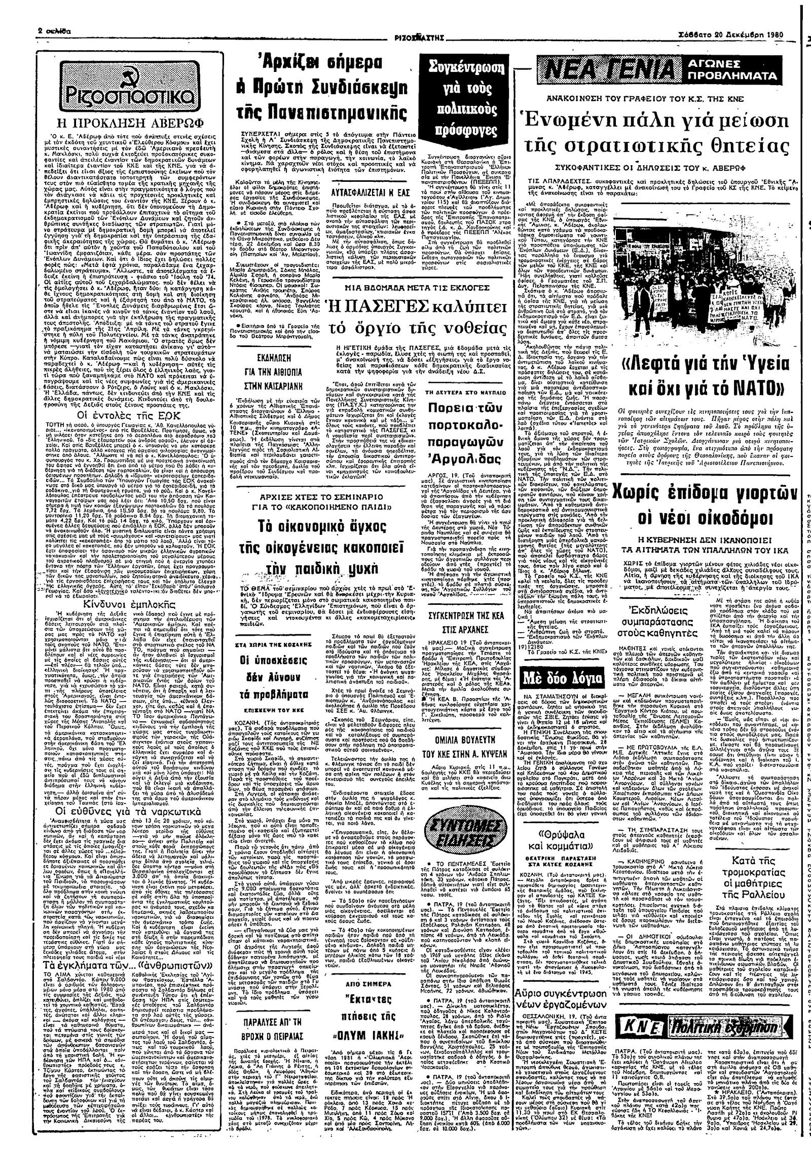 Ριζοσπάστης 20/12/1980