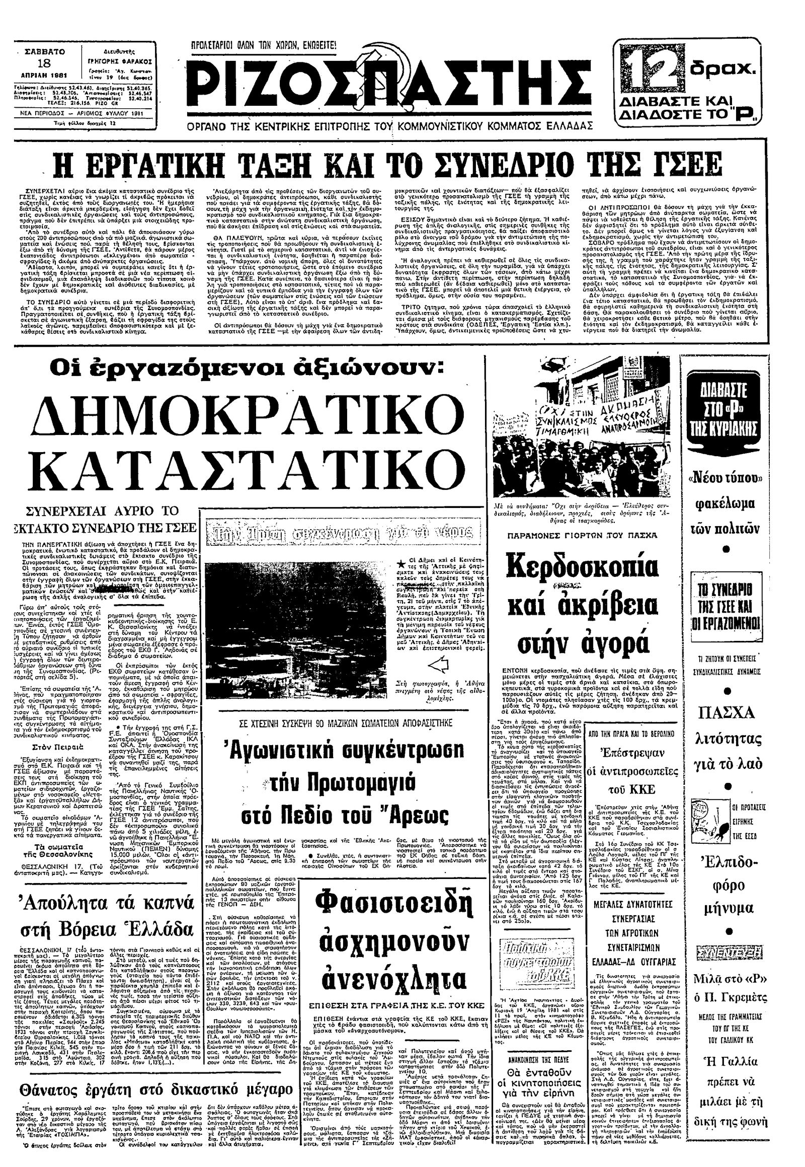 Ριζοσπάστης 18/04/1981