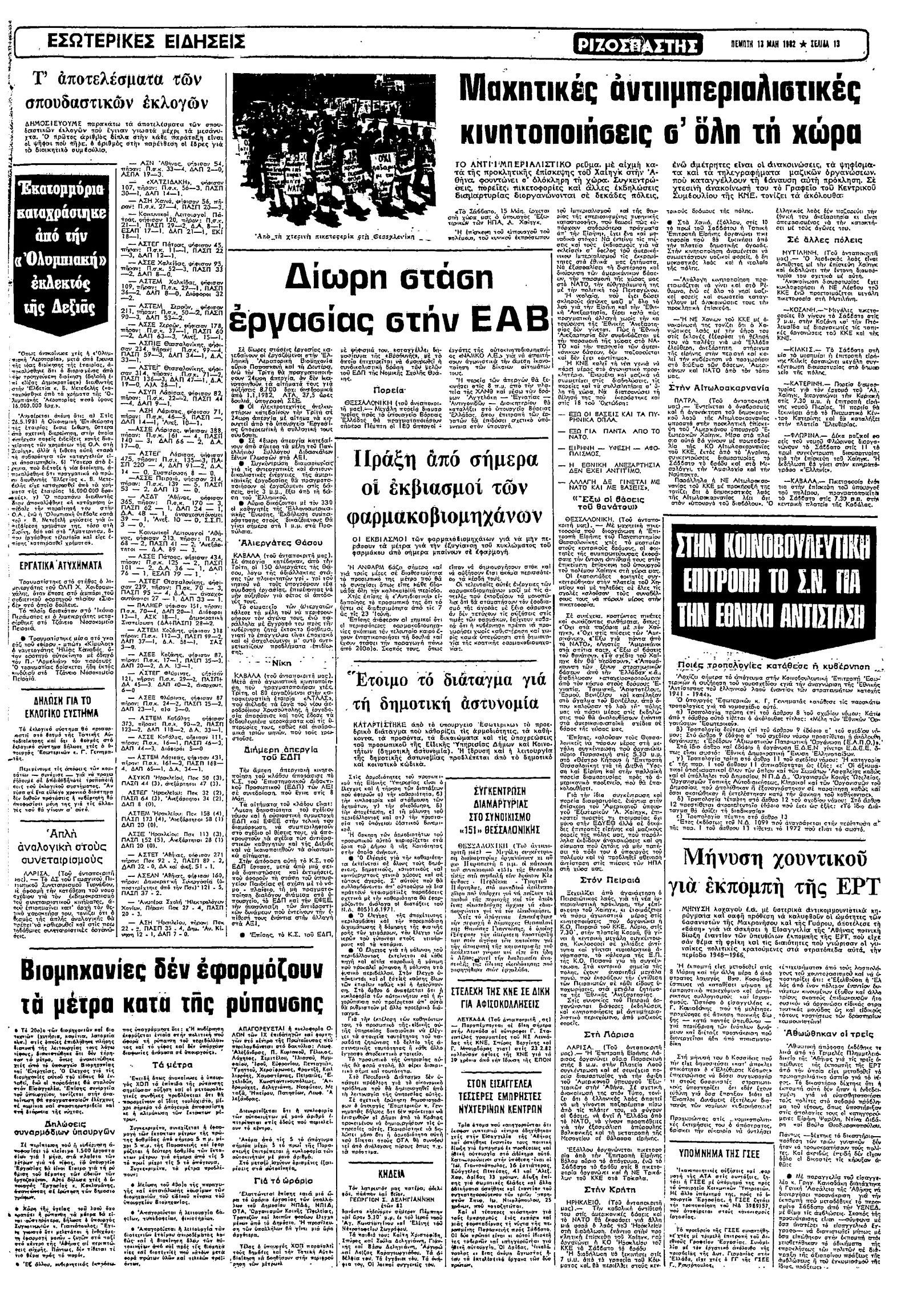 Ριζοσπάστης 13/05/1982