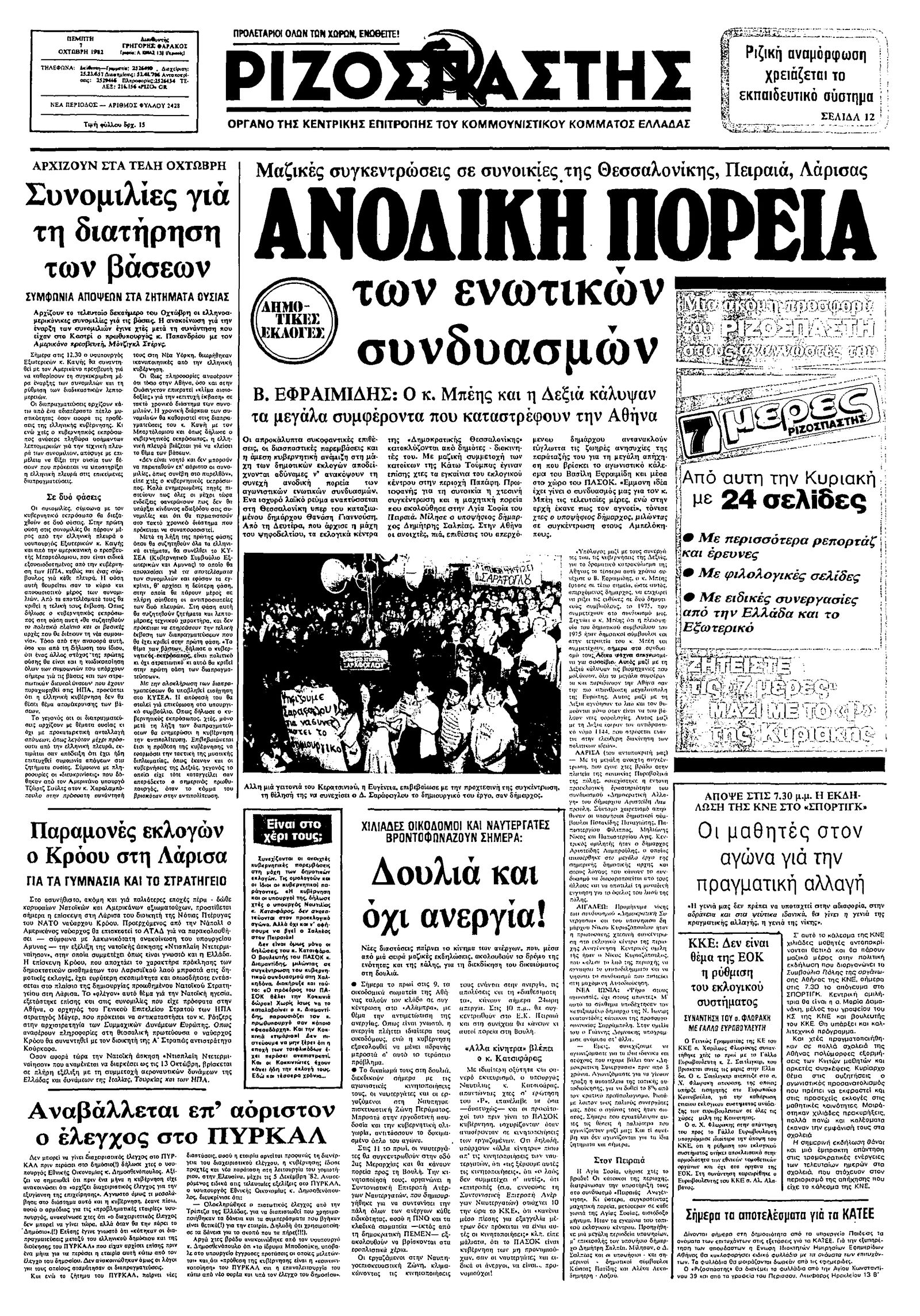 Ριζοσπάστης 07/10/1982
