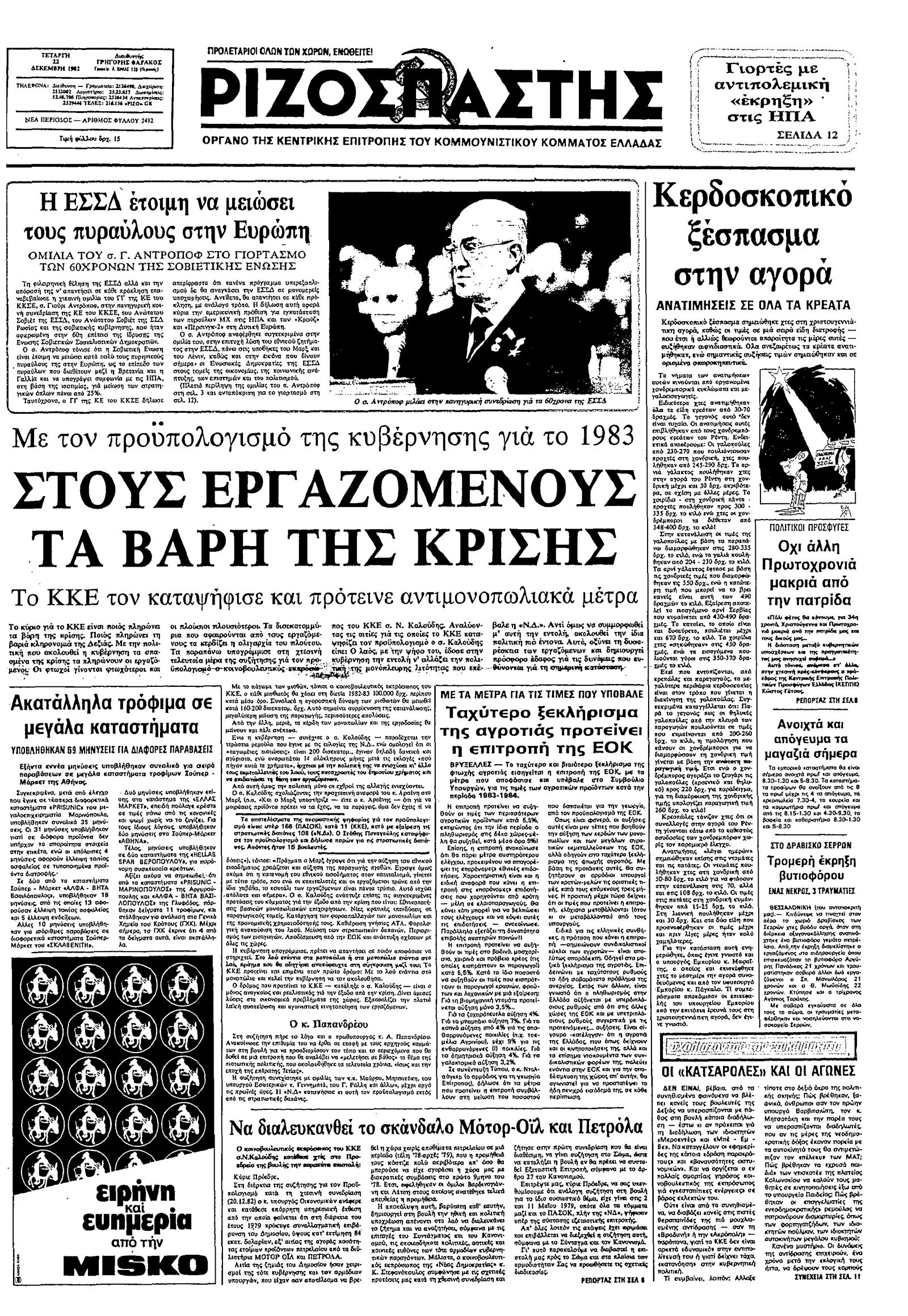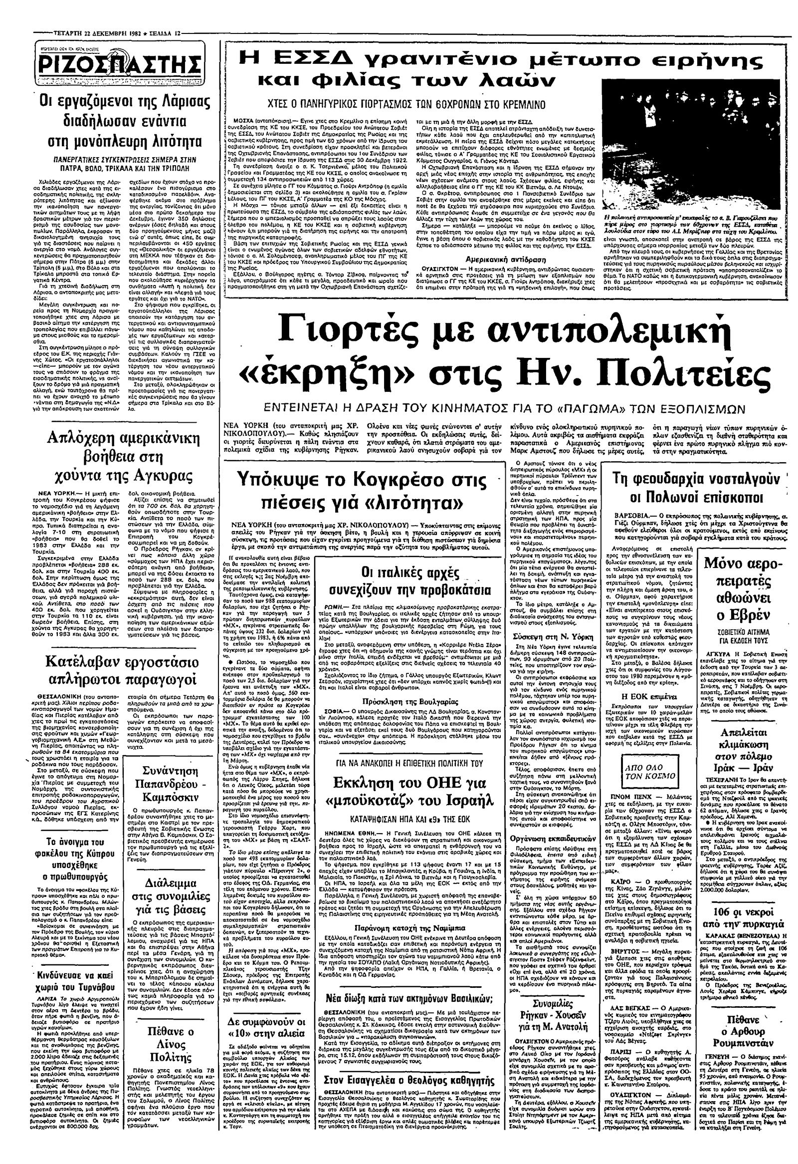 Ριζοσπάστης 22/12/1982