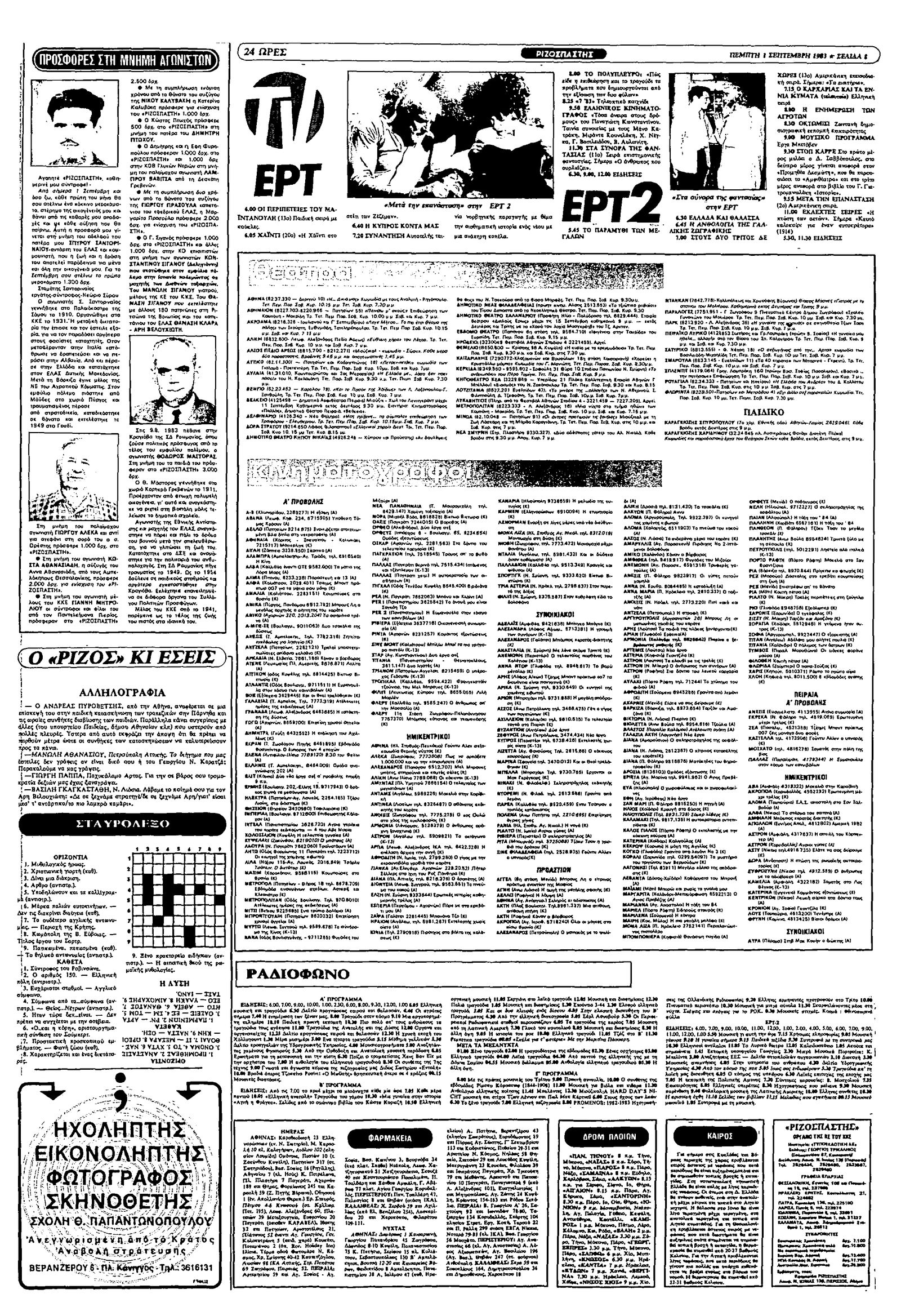 Ριζοσπάστης 01/09/1983