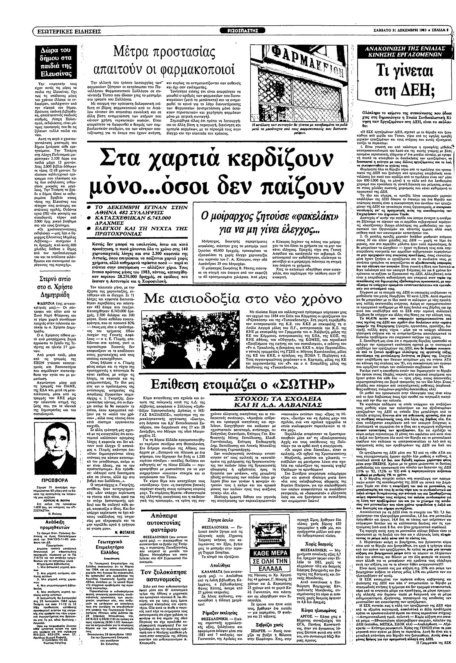 Ριζοσπάστης 31/12/1983