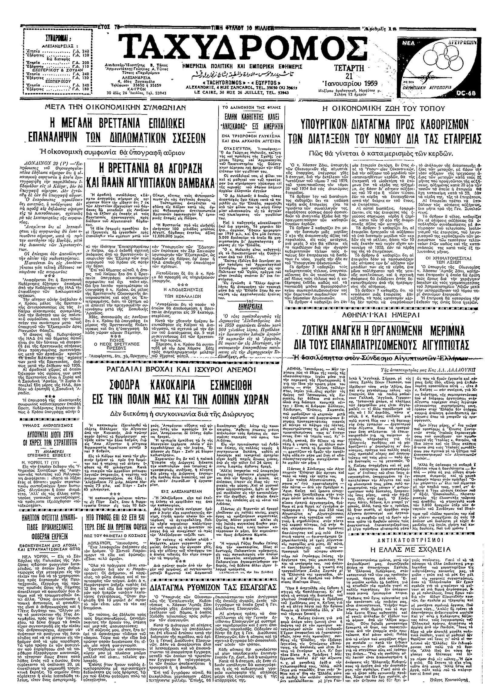 Ταχυδρόμος 21/01/1959